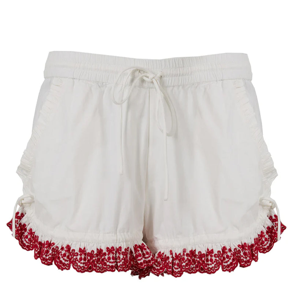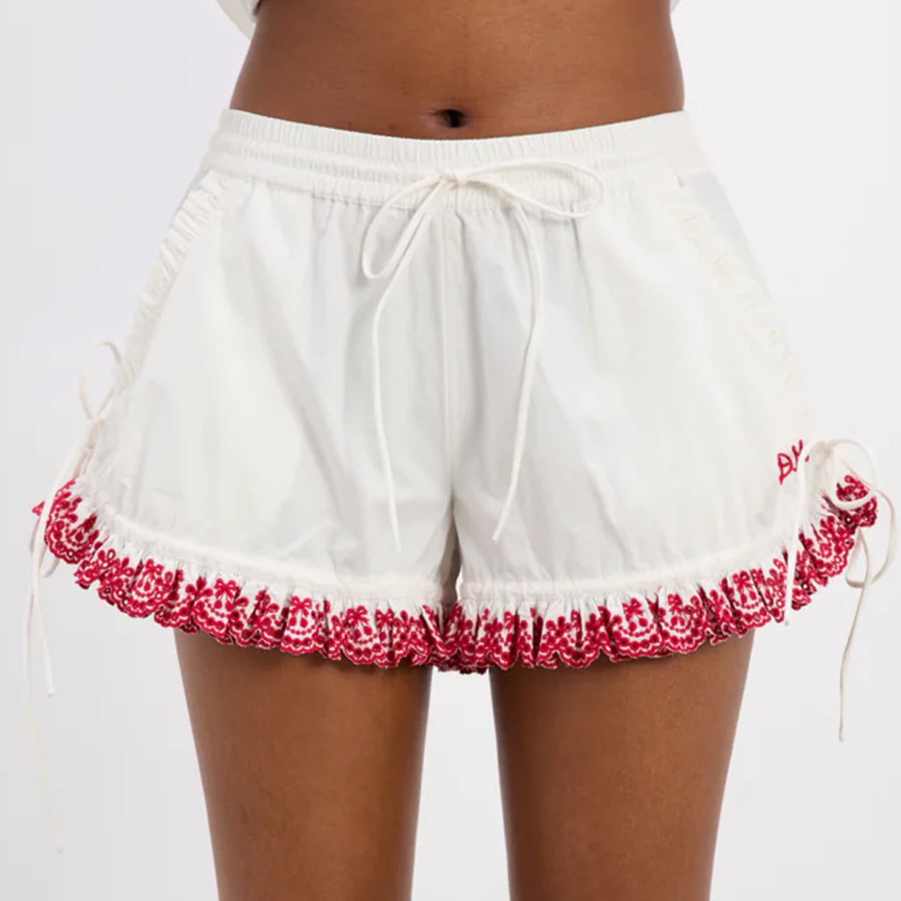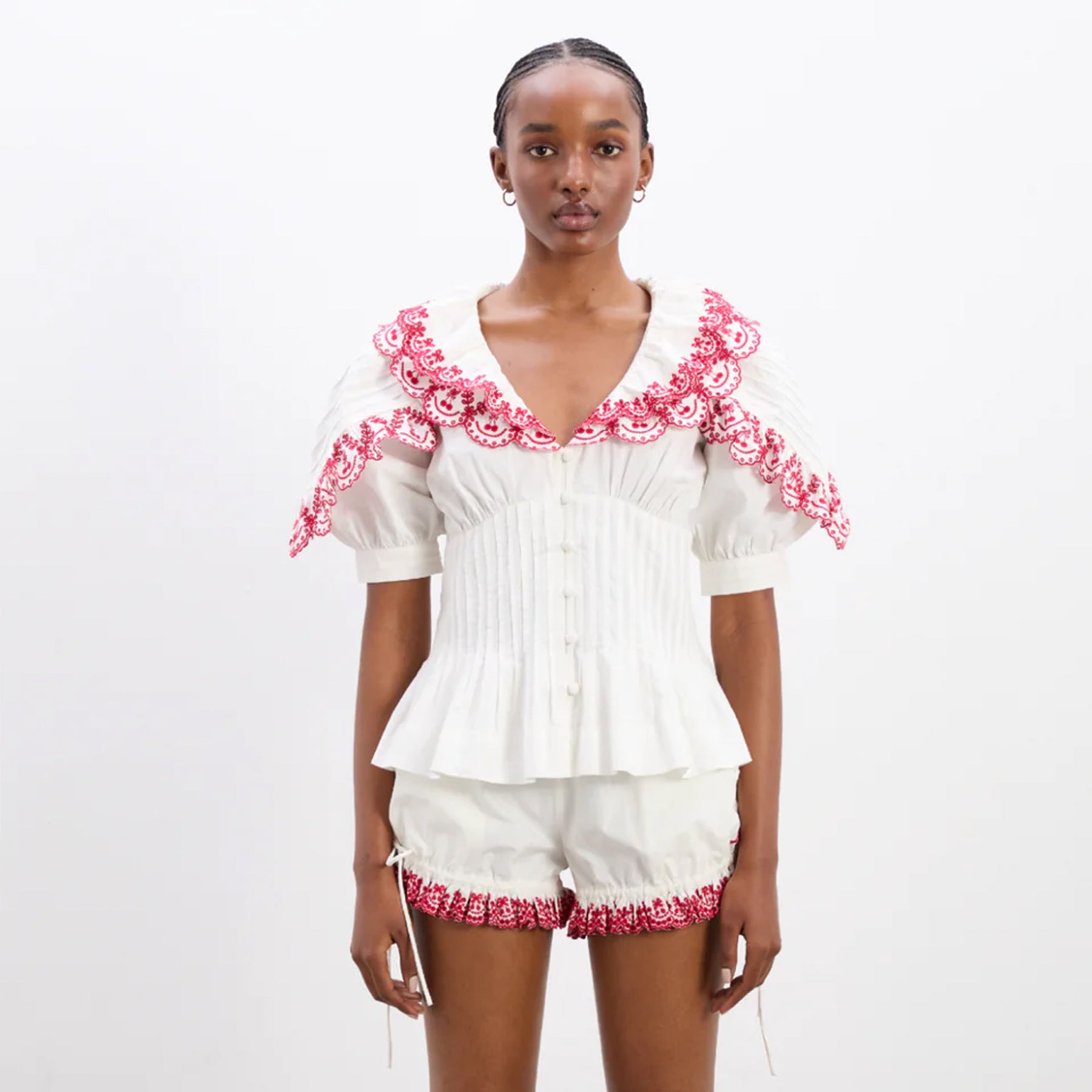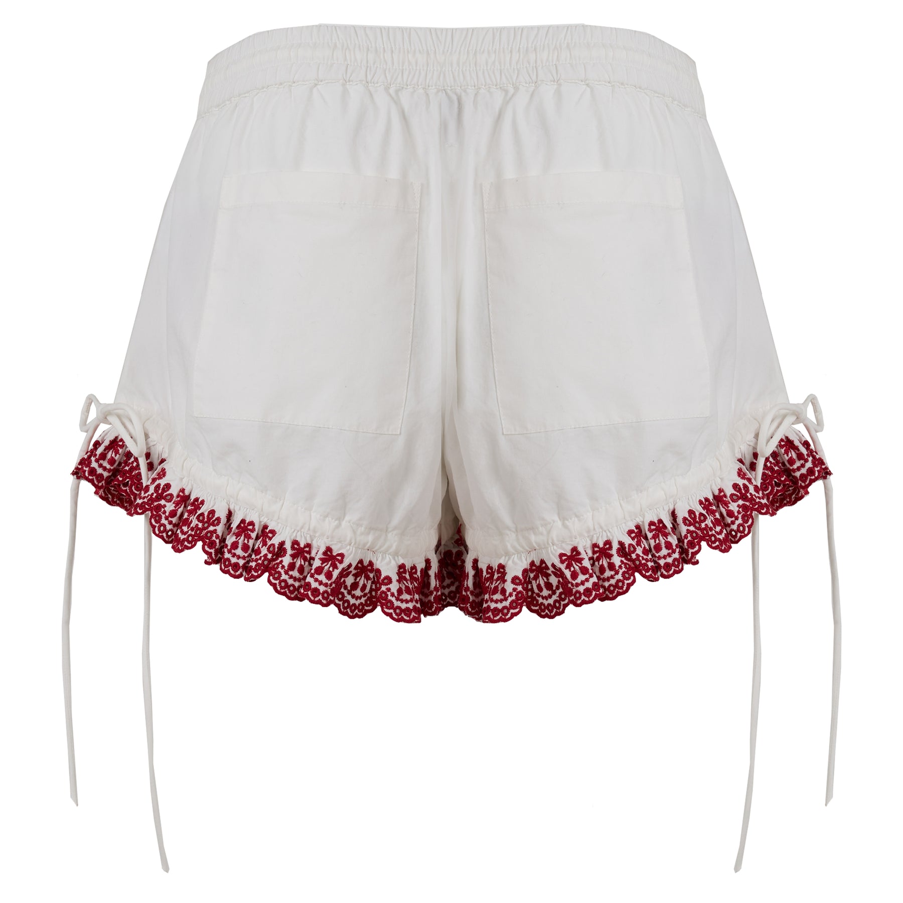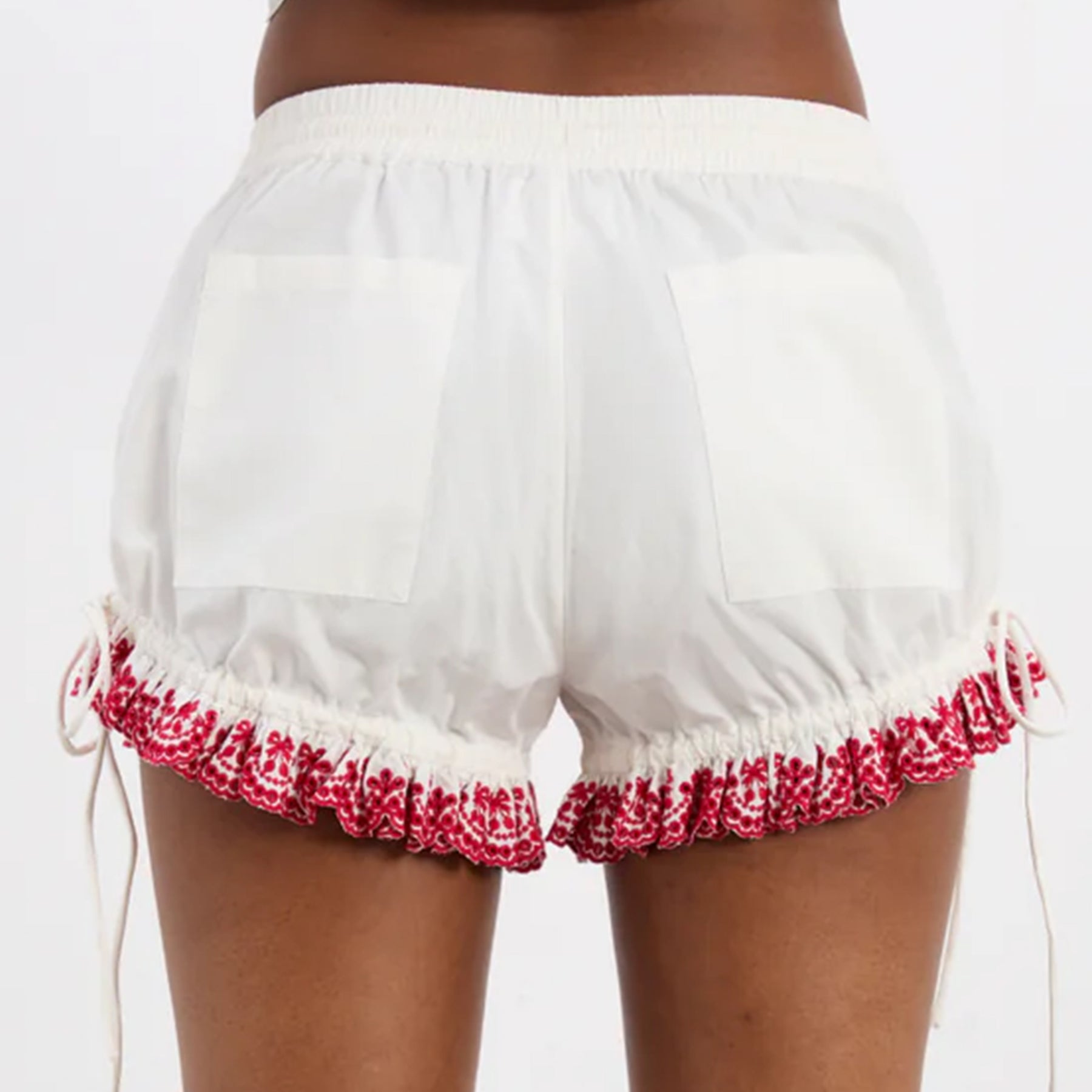 The Damson Madder Jenna Bloomer Shorts offer a playful yet practical design. Featuring embroidered cherry detailing, an elasticated waist, and adjustable ties, these versatile shorts can be styled as bloomers or traditional shorts. Made from 100% cotton, they pair beautifully with the matching Caroline Blouse for a coordinated and stylish summer look.
