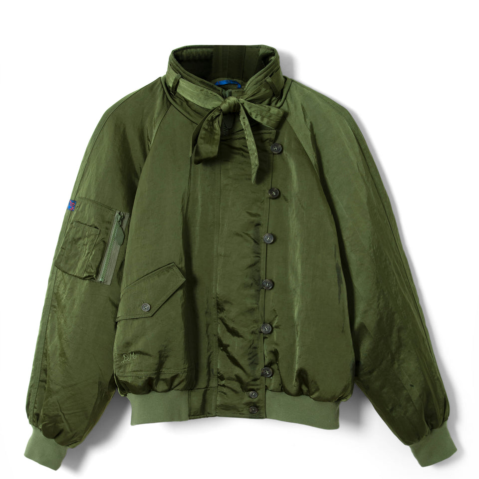 Completed with a detachable bow, signature DM woven sleeve tab, and blue check lining, this versatile bomber is designed to be a wardrobe staple season after season.