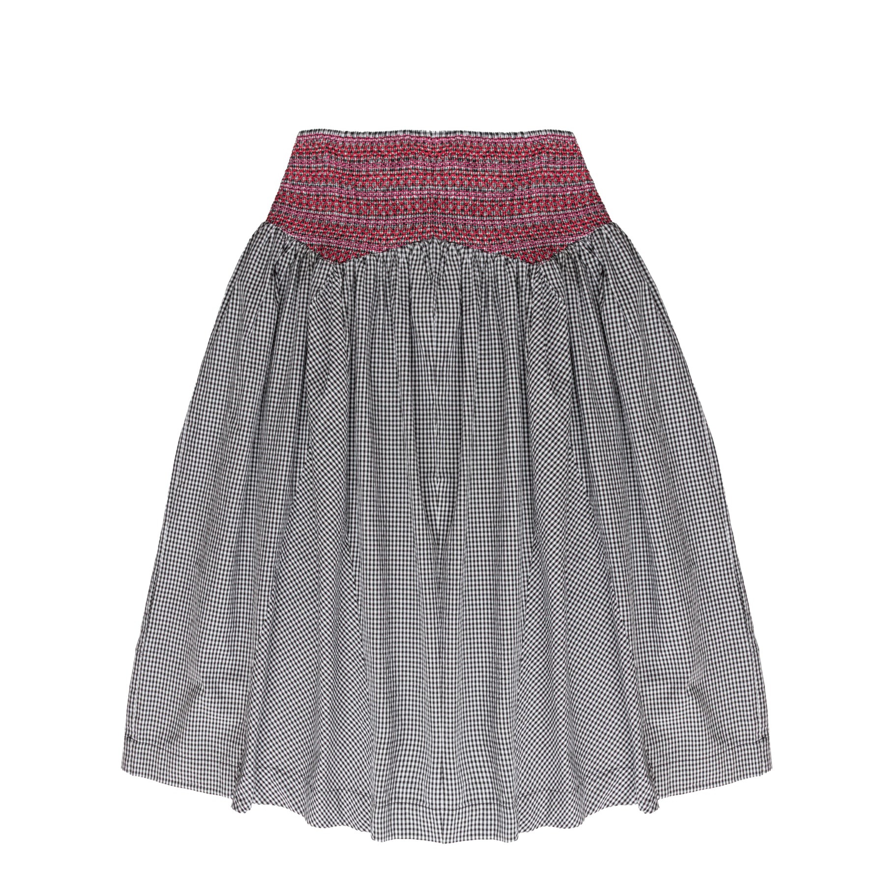 Damson Madder Layla Godet Midi Skirt Black & White Gingham