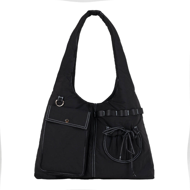 The Damson Madder Multi Pocket Roisin Bag in Black is a slouchy shoulder bag made from 100% recycled polyester. Featuring multiple pockets, it provides organized storage for all your daily essentials while remaining comfortable to wear. A versatile and eco-friendly accessory for everyday use.