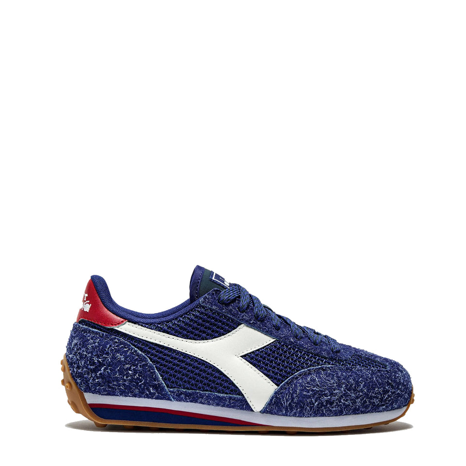 The Diadora Womens Rally Trainer in Blue Regista is a low-profile sneaker that catches attention. It has a quarter made of tightly woven textile and a toe, heel, and eyestay made of hairy suede. The dotted laces of Rally are specially designed to complement the unique finishes of this lifestyle sneaker.