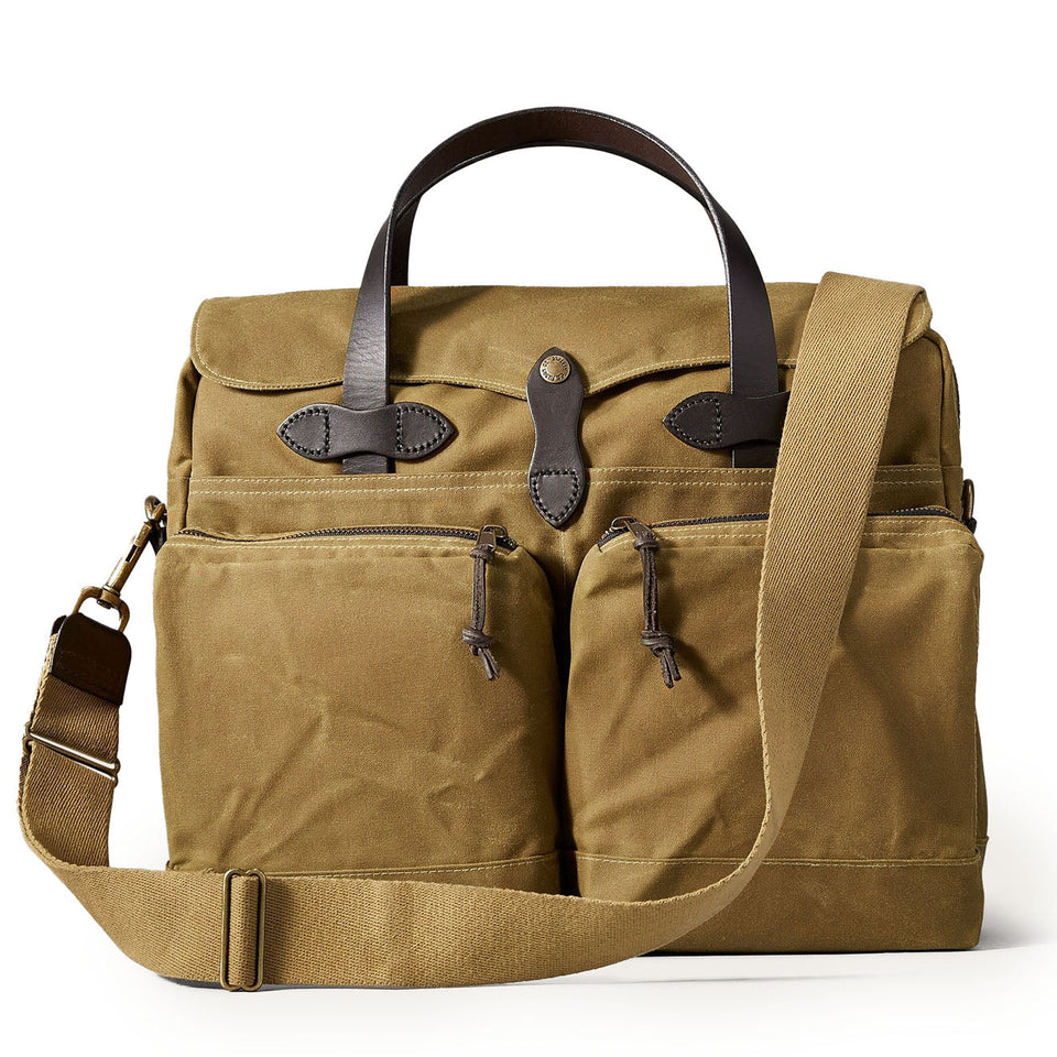 The Filson 24-Hour Tin Briefcase is made from the brands popular Tin Cloth which is extremely durable and is fully lined. It offers a top loading main compartment with laptop divider which allows you to carry a computer up to 15? and it also boasts a number of external pockets. Carry the Filson 24-Hour Tin Briefcase with ease either by the strong leather top handles or the adjustable webbing shoulder strap.