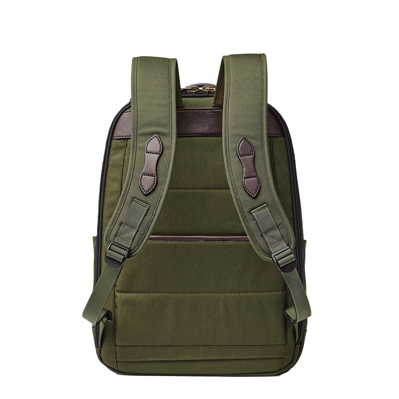 The Filson Dryden Backpack in Otter Green is built from rugged 1000-denier Cordura® nylon, offering exceptional durability and weather resistance. A reinforced double-layer bottom adds extra toughness, while the zippered rear panel includes a padded laptop pocket for secure device storage. Heavy-duty coil zippers and Bridle Leather accents enhance strength and style. With versatile nylon webbing straps, this backpack is ideal for daily use, commuting, or travel.