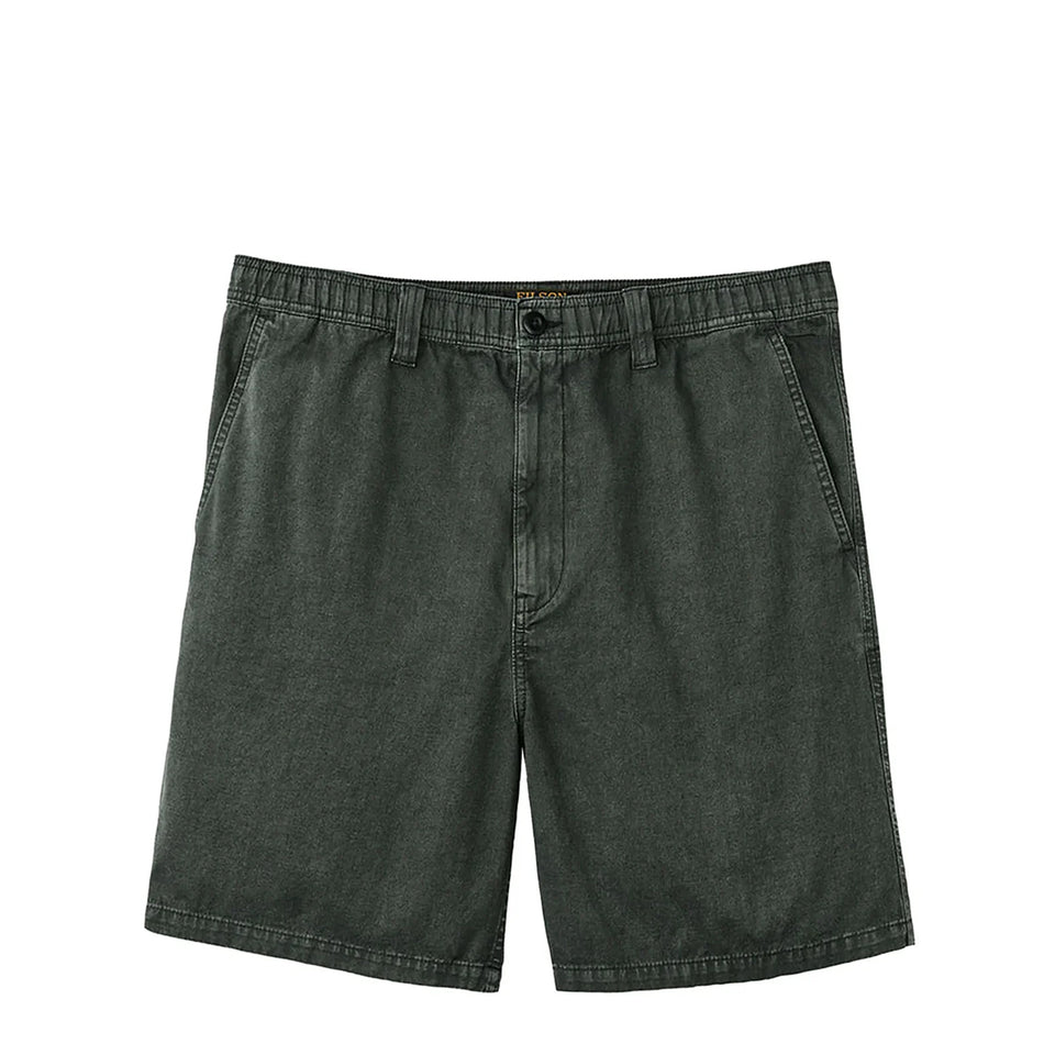 The Filson Oakville Canvas Shorts in Bronze Gravel are ideal for summer hikes and outdoor adventures. Crafted from durable yet lightweight 8-ounce cotton canvas, these shorts provide breathable comfort in warm weather. The hidden elastic and drawcord waistband allow for belt-free wear and a secure fit, perfect for spontaneous swims. Designed with easy-access slash front pockets and button-secure back patch pockets, these shorts offer practical storage and rugged style for any active lifestyle.