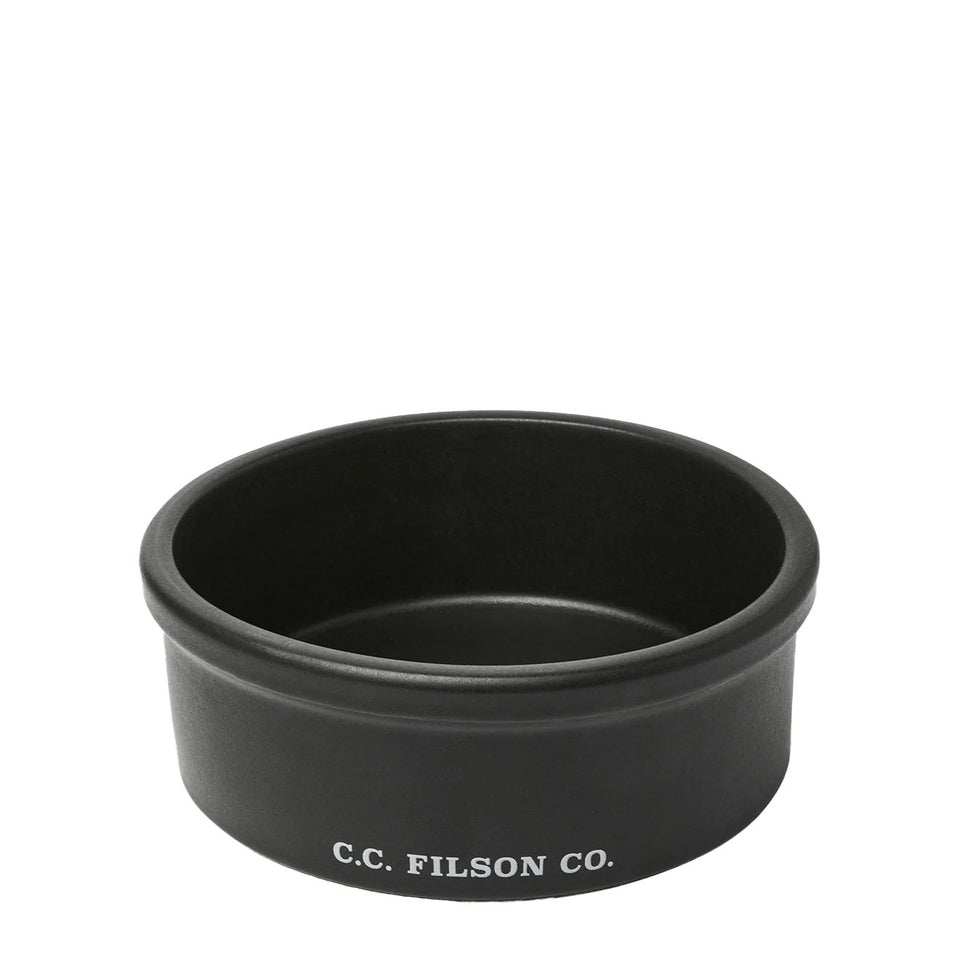 Filson's Stoneware Dog Bowl in black is a beast–built heavy to prevent even most voracious eaters from pushing it around the floor. Custom-made for Filson in Ohio, it’s made of clay that’s kiln-fired at over 2,000°F, with Filson logo graphics and a lead-free glazed finish that prevents moisture absorption. Each bowl will have slight variation in size and shape–no two are exactly alike.
