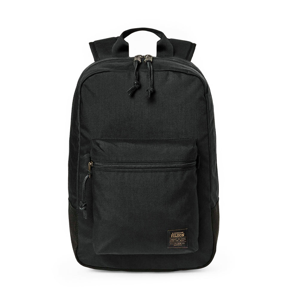 The Filson Surveyor 25L Backpack in Black is a durable, lightweight bag designed for everyday carry and outdoor use. Its waxed 500D and 1000D Cordura nylon construction is highly abrasion-resistant and water-repellent. The ergonomic shoulder straps and padded back panel make carrying heavy loads easier, and the adjustable sternum strap provides extra stability. Inside, a padded laptop pocket and stow pockets keep your gear organised, while the exterior pocket offers quick access to essentials.