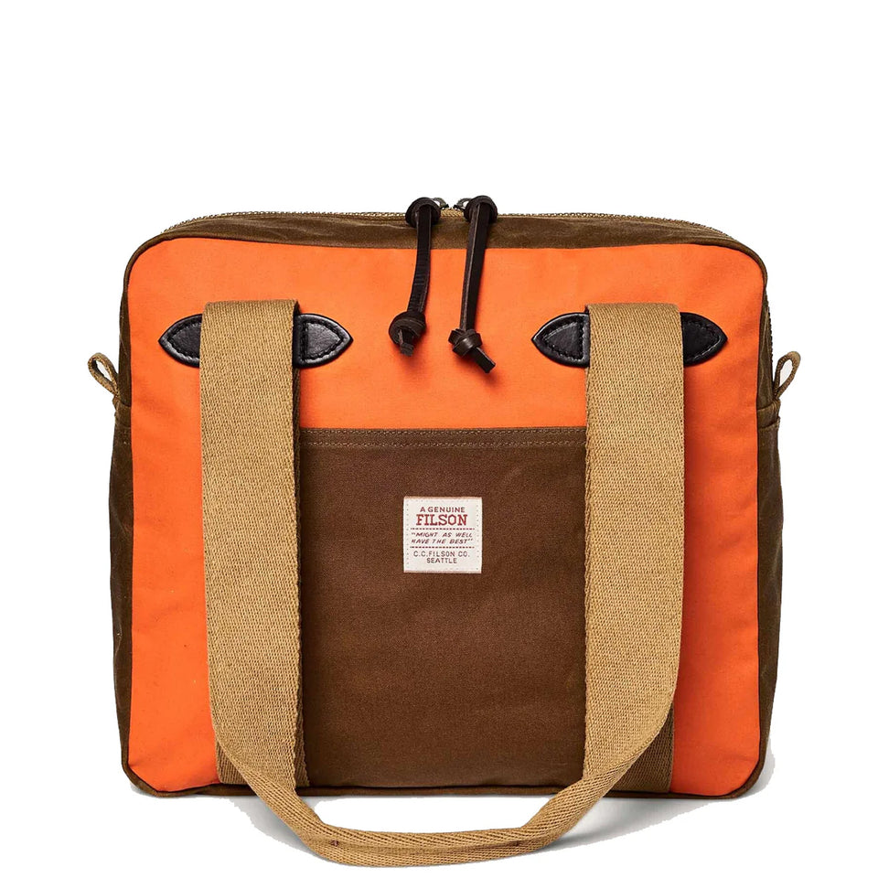 Filson Tin Cloth Tote Bag With Zipper Dark Tan / Flame