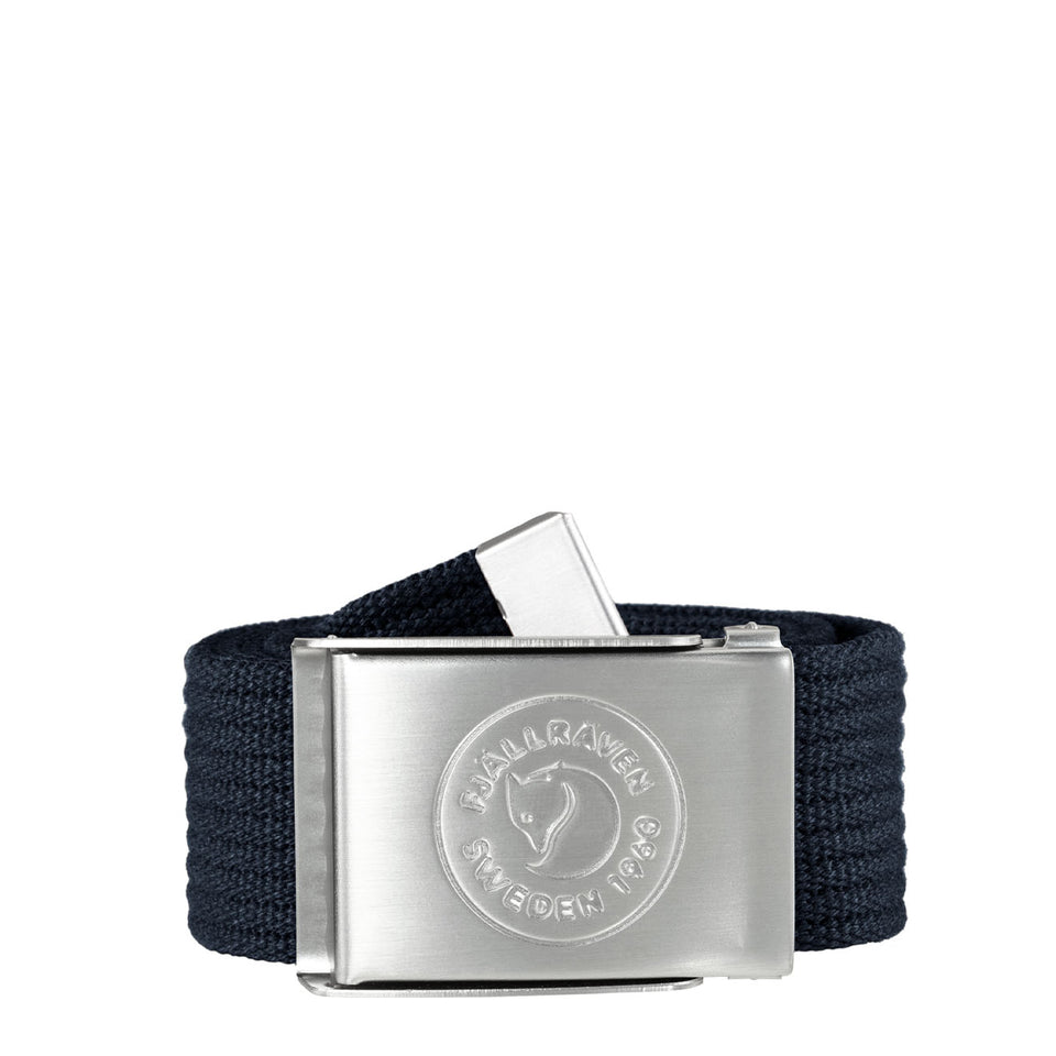 The Fjallraven 1960 Logo Canvas belt in recycled polyester. Easily shortened with the 1960 logo on the metal buckle.