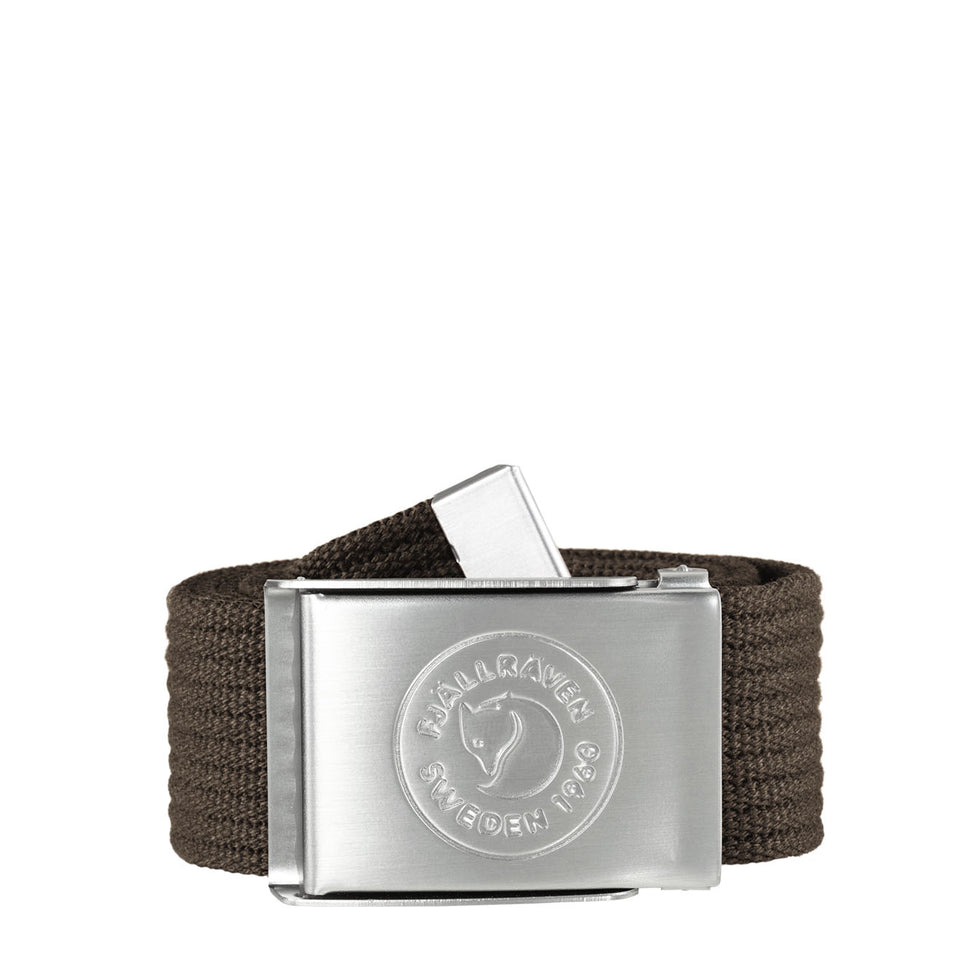 The Fjallraven 1960 Logo Canvas belt in recycled polyester. Easily shortened with the 1960 logo on the metal buckle.