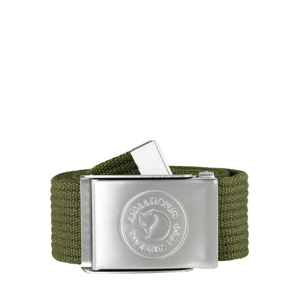 The Fjallraven 1960 Logo Canvas belt in recycled polyester. Easily shortened with the 1960 logo on the metal buckle.