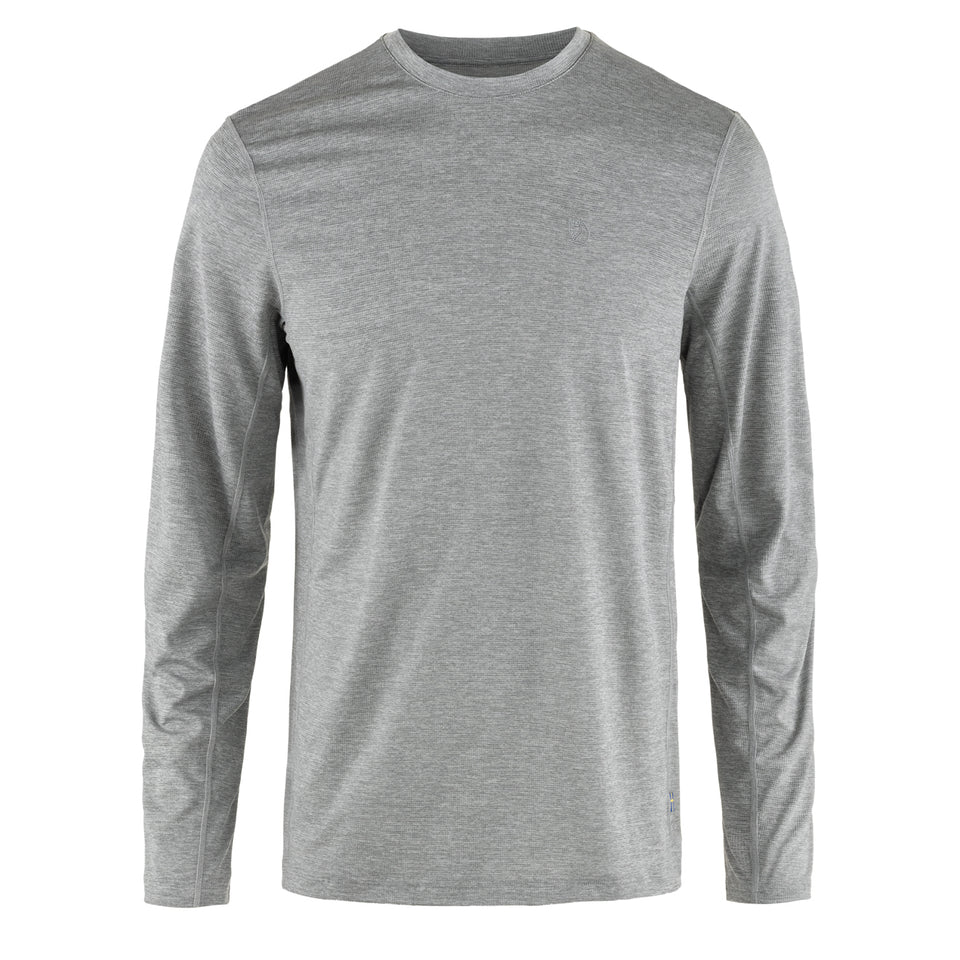 Fjallraven Abisko Day Hike Long Sleeve in Shark Grey is a lightweight, functional long-sleeved top for men that is suitable for outdoor life and travelling in warm, sunny climates. Made using a technical jersey knit in recycled polyester that wicks away moisture and dries in no time for maximum comfort and sun protection. Panels under the arms for excellent freedom of movement and shoulder seams that are positioned towards the back to reduce the risk of chafing when wearing a backpack. Embroidered logo on the chest.