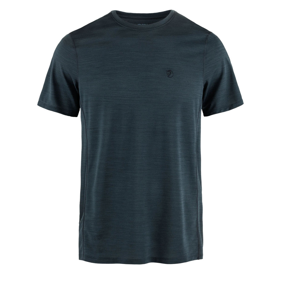 The Fjallraven Abisko Lite Short-Sleeved T-shirt in Dark Navy is lightweight and airy and made from a recycled polyester jersey knit that drapes well. Perfect for warm climates and intense activities, this is a t-shirt that will help you keep your cool as the temperature rises. The mesh-like fabric is highly ventilating and wicks away moisture fast. The low-profile seams have been moved back on the shoulders to reduce the risk of chafing under a backpack.