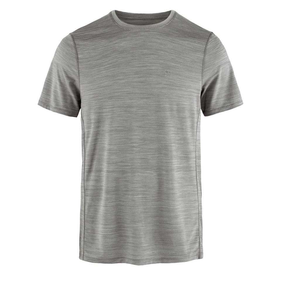 The Fjallraven Abisko Lite Short Sleeve T Shirt in Grey Melange is a high-performance, lightweight top made from recycled polyester jersey knit. Ideal for trekking and outdoor activities in warm climates, it offers excellent moisture-wicking and quick-drying properties. Mesh-like fabric ensures optimal ventilation, while offset shoulder seams minimize chafing when wearing a backpack. A breathable and durable choice for high-output adventures.