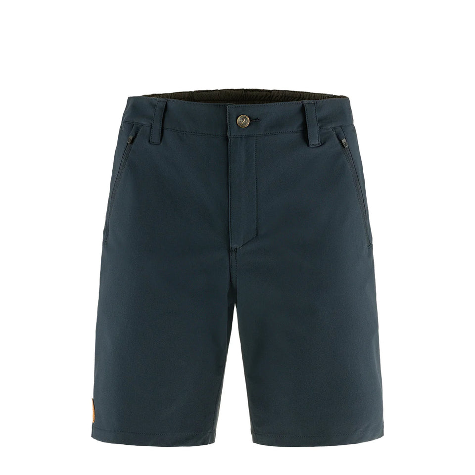 Designed for comfort, these lightweight and packable full-stretch shorts for men are ideal for trekking in warm conditions where freedom of movement is paramount. They are made of a double-woven stretch fabric that is durable and dries quickly. Abisko Trail Stretch Shorts M in Dark Navy have a comfortable, elasticated waistband with button closure, zippered mesh hand pockets and a zippered mesh security pocket on the leg that is large enough to fit a phone.