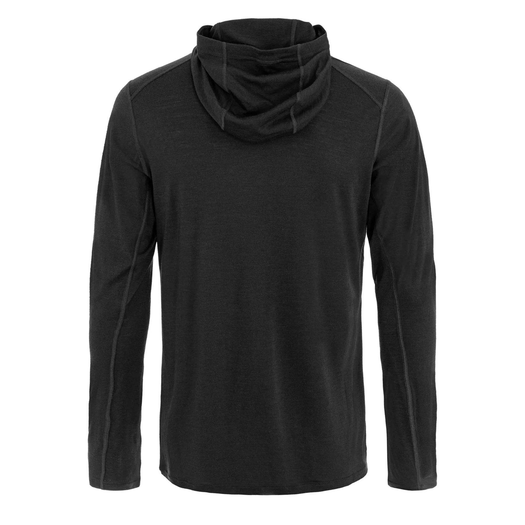 The Fjällräven Abisko Wool Sun-Hoodie in Black is a lightweight, breathable layer made from a soft jersey knit blend of ZQ-certified merino wool and polyester. Perfect as a first layer in both warm and cool conditions, it combines the natural temperature regulation and odour resistance of wool with the moisture-wicking durability of synthetic fibres. Featuring a hood for light sun protection, long sleeves with thumbholes, and a comfortable fit, it's an ideal choice for multiday treks and active outdoor adventures.