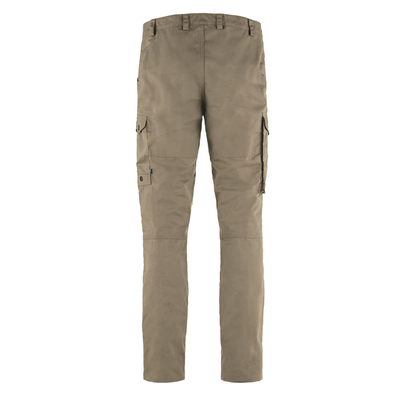 Fjallraven Barents Pro Trousers Suede Brown. Durable trekking trousers for adventures in the mountains and forest. Made using durable wind- and water-resistant G-1000 fabric with a double layer over the rear and knees. Regular waist (mid waist) and regular fit with pre-shaped knees.