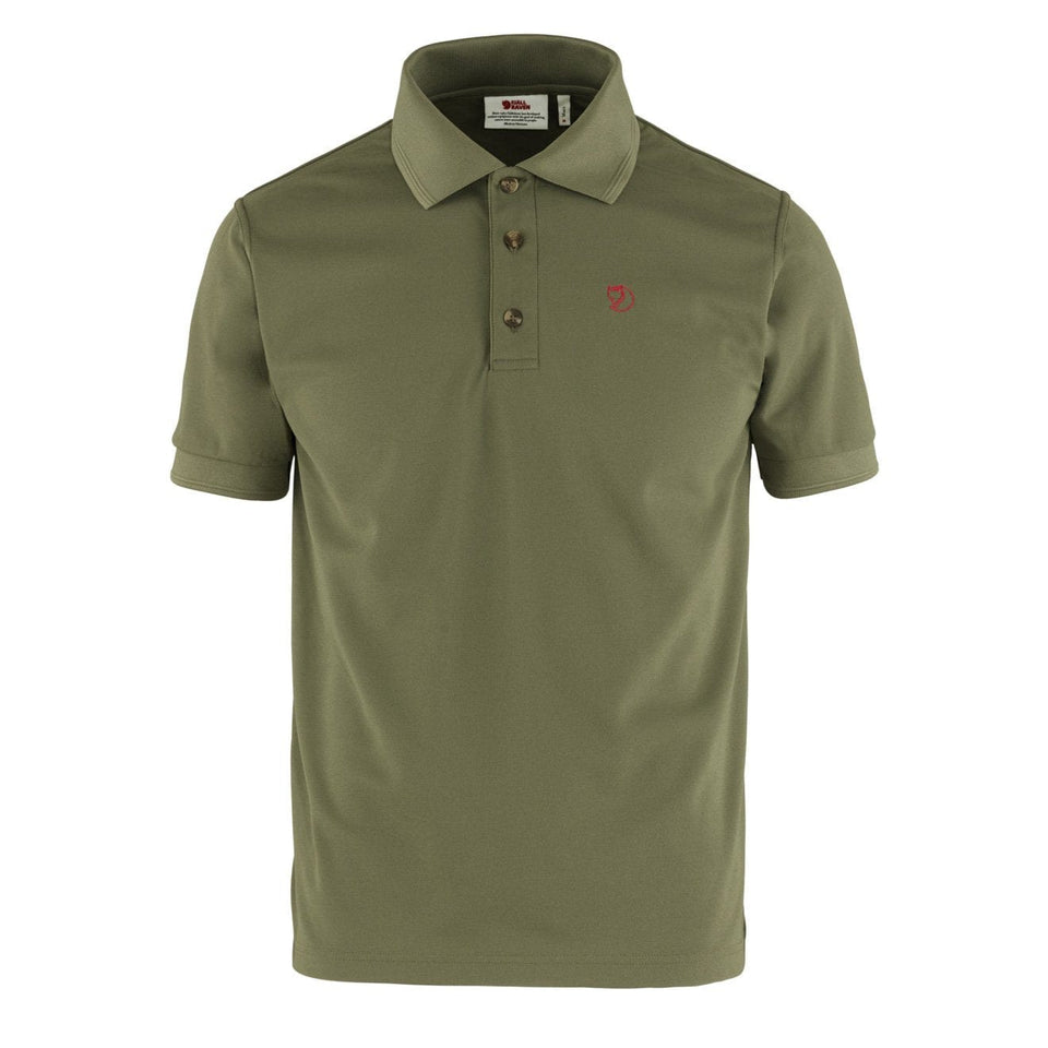 Short-sleeve Fjallraven pique shirt quick-drying functional material that effectively wicks away moisture. Perfect for sweaty treks or trips to warmer climates. Classic design with low collar and three buttons in the front. Straight cut with slits on the side.
