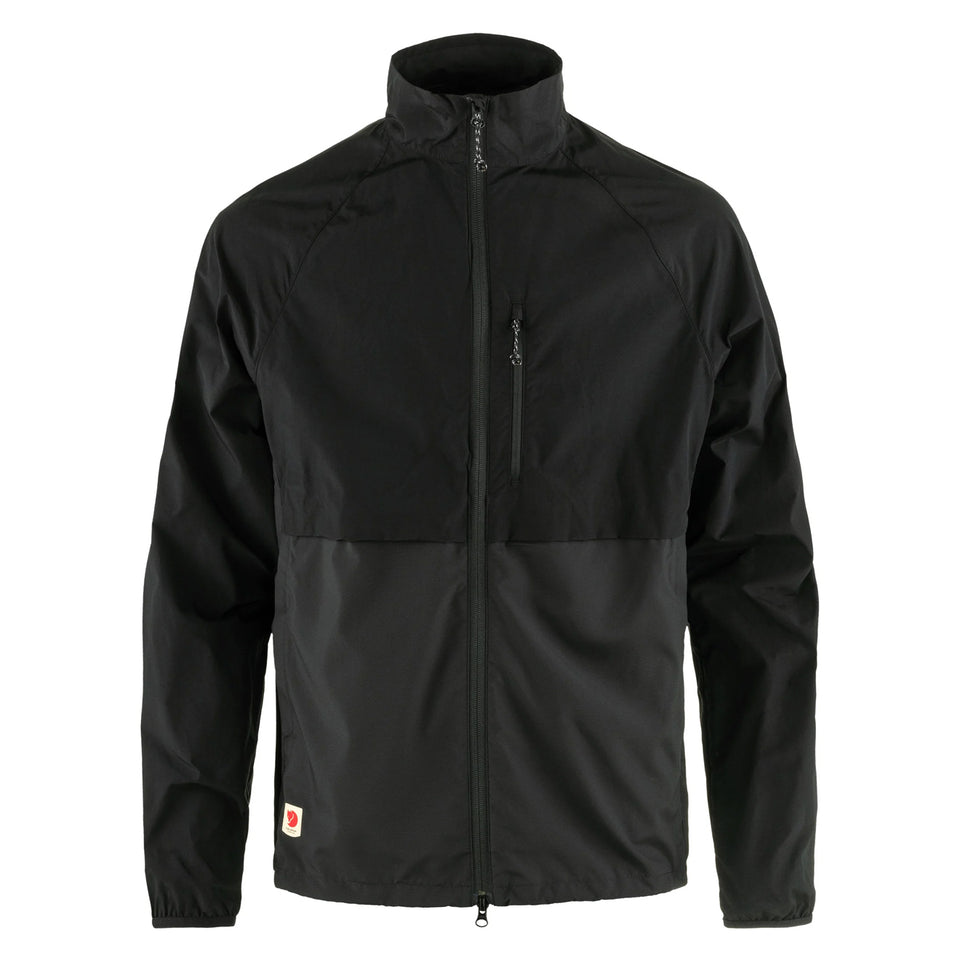 The Fjällräven HC Hybrid Wind Jacket Black is a lightweight jacket that provides protection where it is needed most by combining two functional fabrics. HC-Lite covers the shoulders, chest, and sleeves, while polyester ripstop is used on the back and lower front. The jacket is wind resistant, can handle light rain, and dries quickly if it gets wet. With a relaxed fit, it is practical and easy to pack into a backpack, making it suitable for a variety of outdoor activities such as walking, paddling, or cycling.