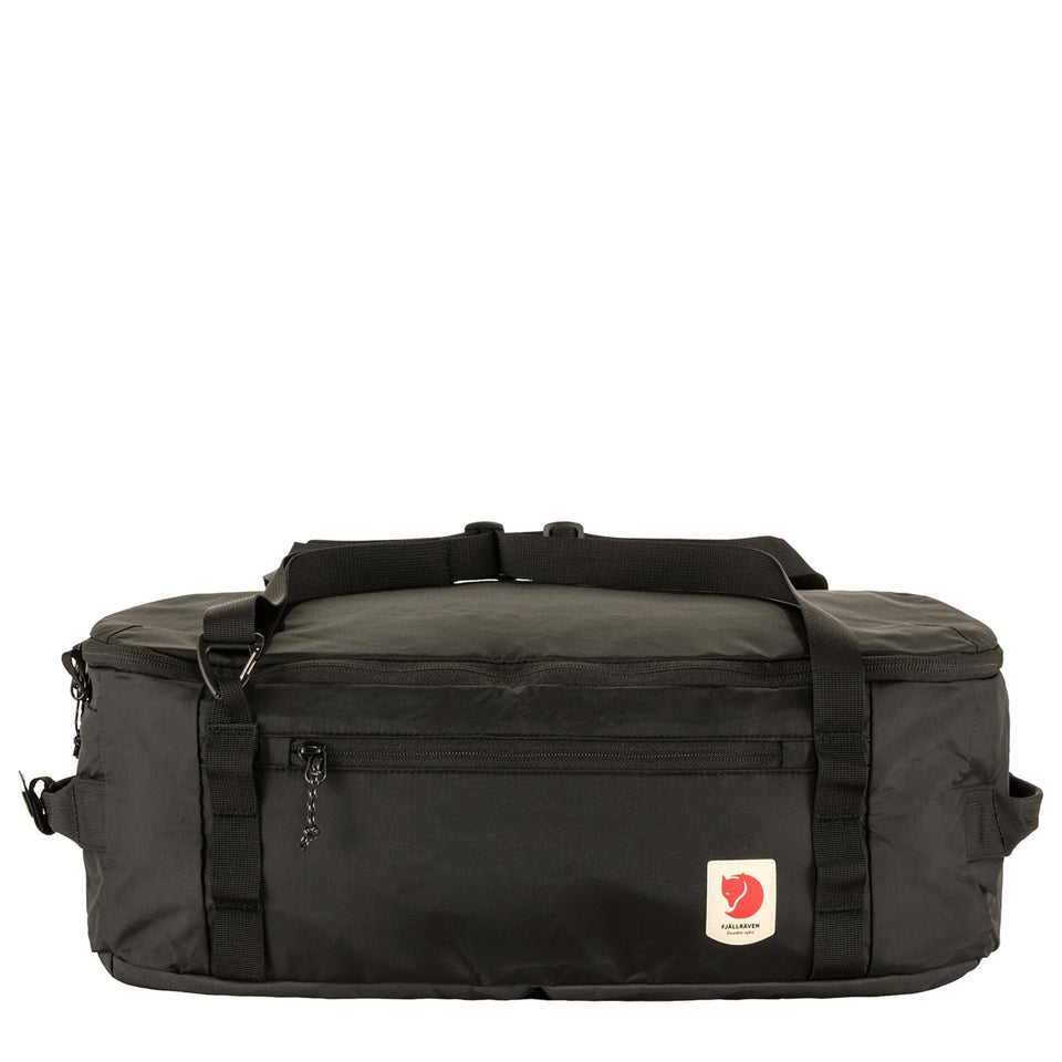 The Fjällräven High Coast Duffel 22 in Black is a lightweight, versatile bag made from recycled polyamide, ideal for short trips or gym use. It features adjustable straps for carrying by hand, over the shoulder, or as a backpack. A padded base and back panel protect your gear, while the full clamshell opening allows for easy access and organised packing.