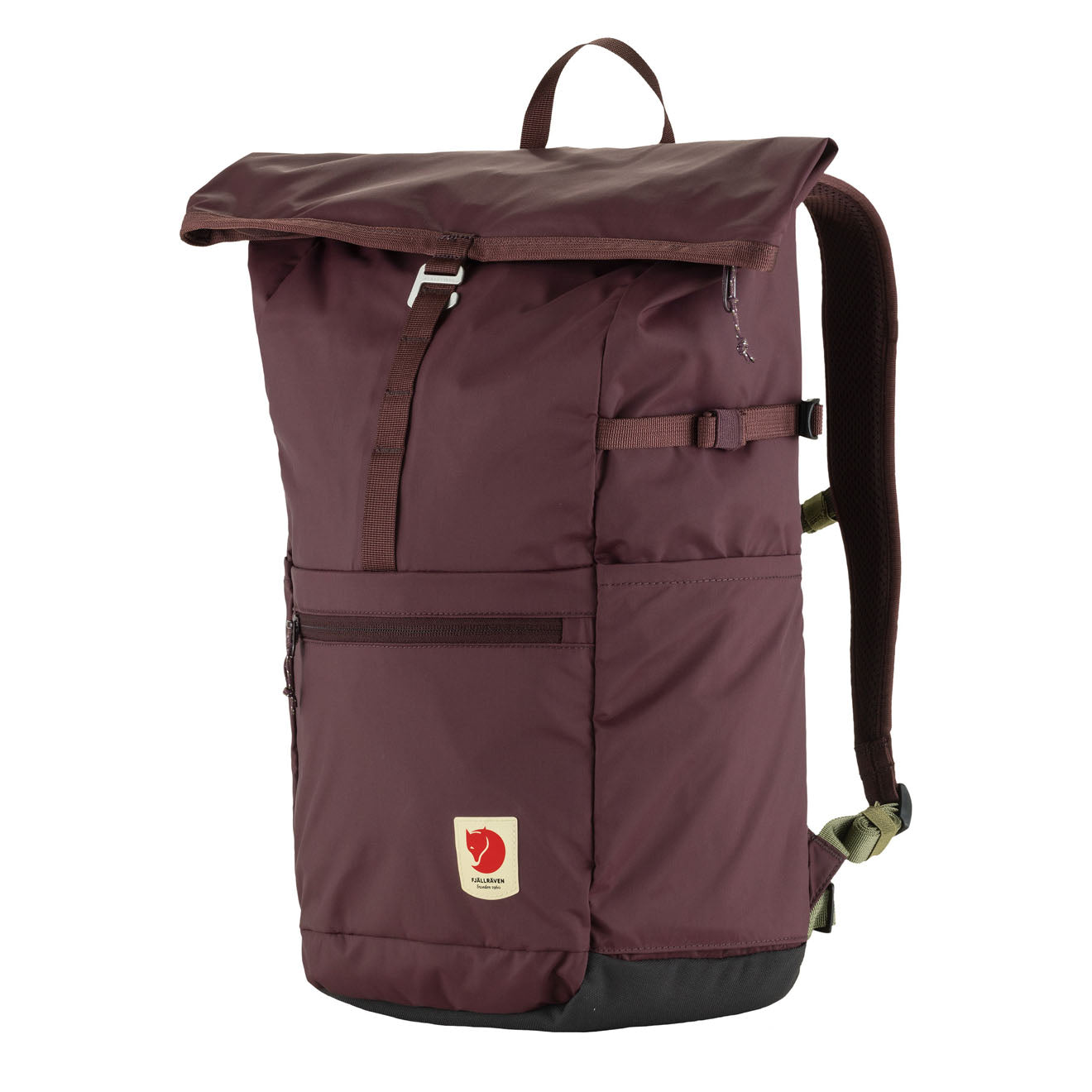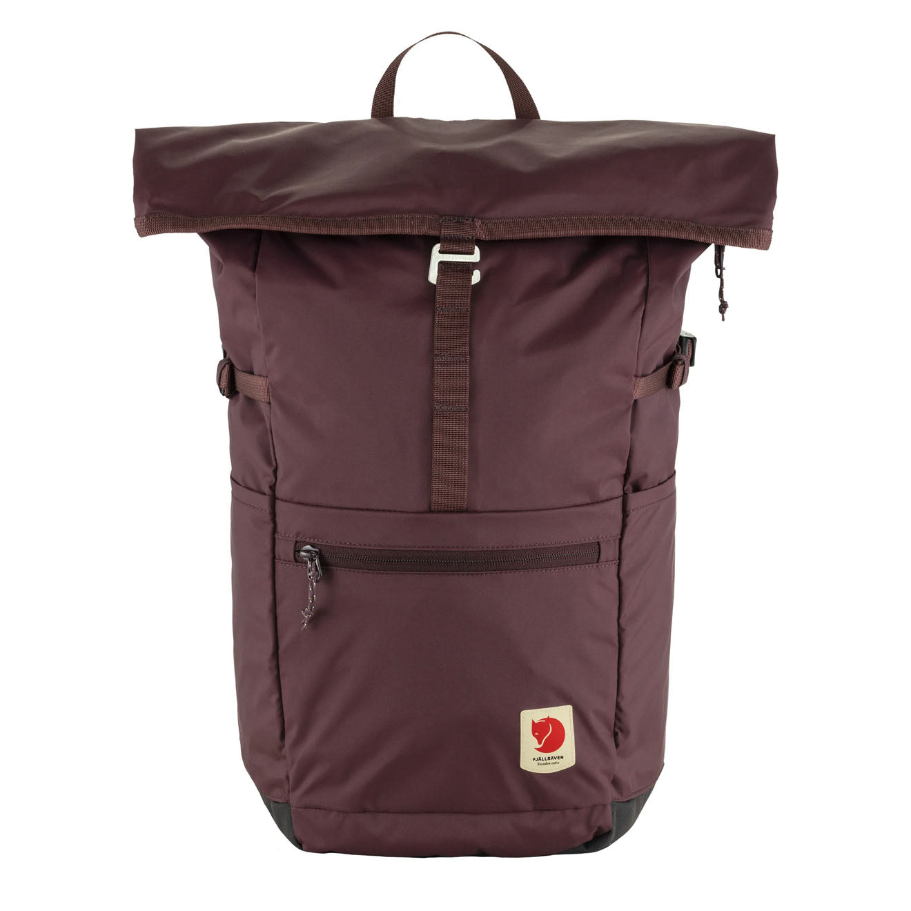 The Fjällräven High Coast Foldsack 24 in Blackberry is a light and versatile daypack made from recycled polyamide, ready for your adventures. Its fold-over top closure allows for easy volume expansion in the main compartment, while a spacious front pocket keeps small items easily accessible. Designed for comfort, it features lightly padded shoulder straps, making it perfect for day trips and travel. The main fabric is waterproof, providing good protection from rain.