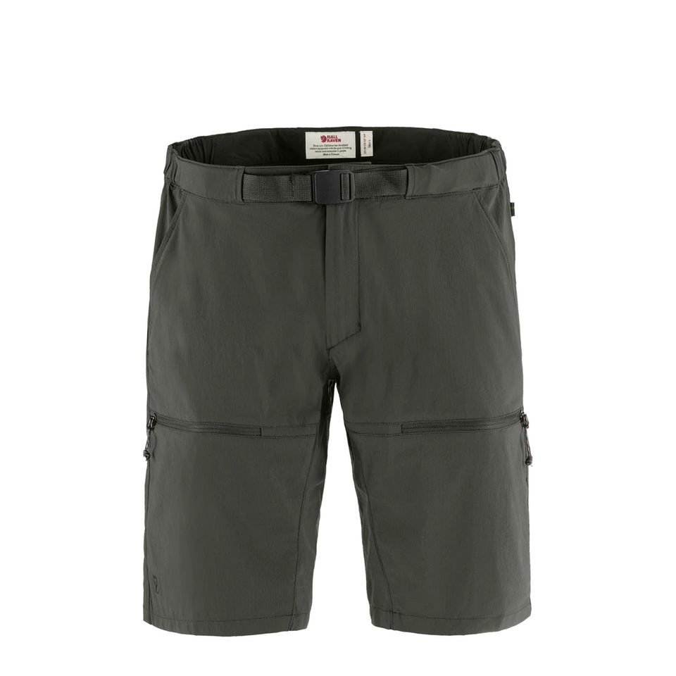 The Fjallraven High Coast Hike Shorts in Mountain Grey are lightweight, quick-drying shorts designed for warm-weather activities like hiking and kayaking. Made from stretchy, pliant fabric with a gusseted crotch and elasticated waist, they provide excellent freedom of movement. Features include an adjustable textile belt, two hand pockets, and two zippered leg pockets for secure storage.