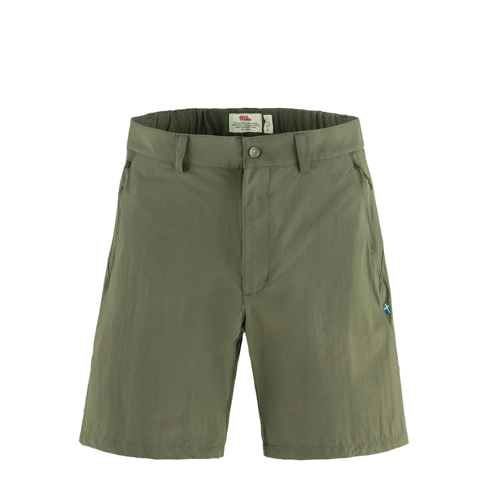 The Fjällräven High Coast Pack Shorts in Laurel Green are lightweight, quick-drying shorts designed for hiking, water sports, and warm-weather activities. Made for comfort and breathability, they feature mesh-lined pockets for extra ventilation and pack down small for easy storage on the go. A versatile and practical choice for a variety of outdoor adventures.