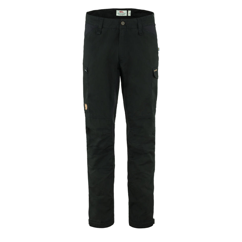 Hardwearing trekking trousers in G-1000 Eco with recycled polyester/organic cotton – Kaipak Trousers M are casual yet technical trekking trousers that work just as well on the trail as for everyday use. They are slightly wind and shower resistant, and readily release moisture when the pace picks up. The hybrid construction has stretch panels at the waist, crotch and back of the knees, and the articulated cut with pre-shaped knees and rear provides good freedom of movement. Two large leg pockets with discreet bellows, two hand pockets and leg endings with adjustments and boot hooks.