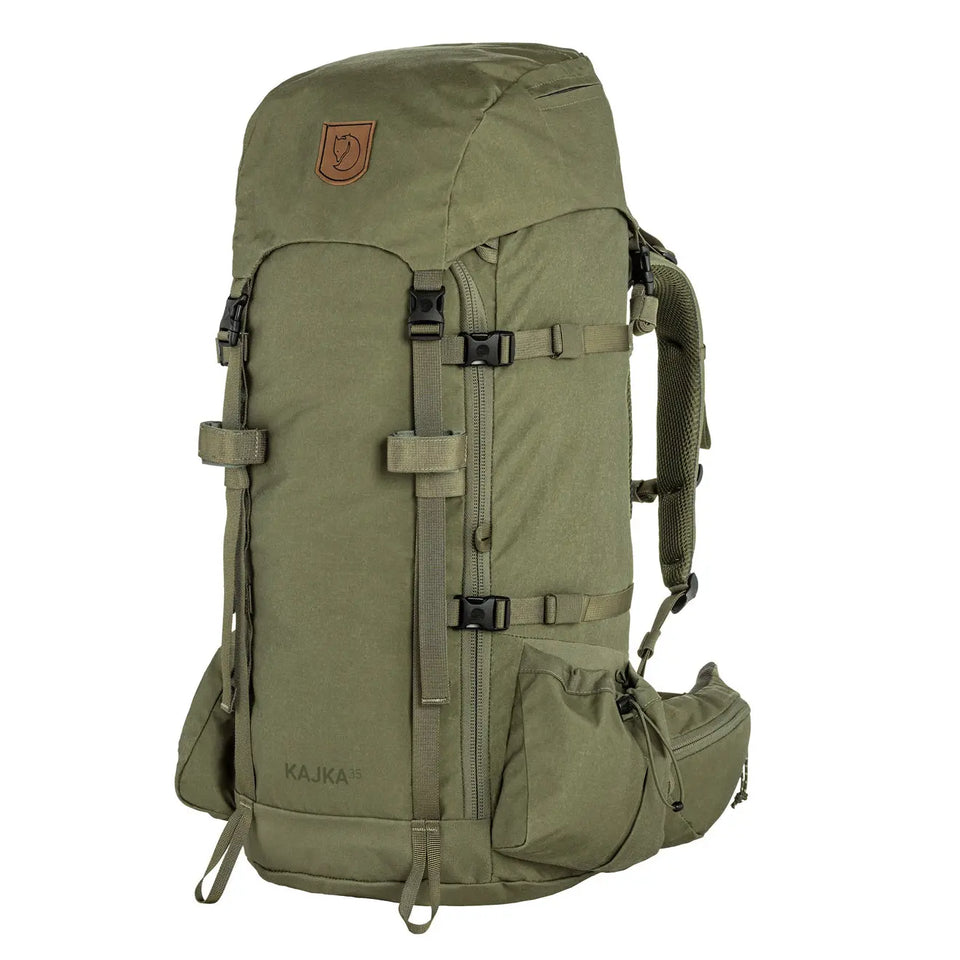 Durability with high functionality and comfort – Kajka 35 is an advanced trekking daypack that has been praised by hikers all over the world. One reason is its wooden frame construction made from FSC-certified birch, which together with the easily adjusted back length, makes Kajka a backpack designed to carry heavy loads so you can focus on hiking rather than back pain. The ergonomic shoulder straps and supportive hip belt with a pocket add even more functionality and comfort. Made from durable Vinylon F fabric with reinforcement fabric in recycled nylon. Add more storage to Kajka 35 by attaching Kajka Side Pockets to the loops on the sides: there are also loops on the front for attaching hiking poles/ice axes. The main compartment has an internal mesh pocket and a full front zipper opening for easy organising and a great overview of contents. The top lid has three zippered pockets and can be detached and used as a crossbody bag. Two compression straps on each side provide even and effective compression while leaving the side pockets accessible. Hydration system compatible. Rain cover included.