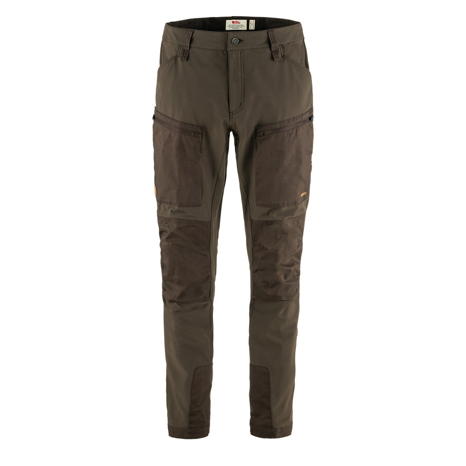 The Fjallraven Keb Agile Trousers Regular Leg in Dark Olive have been created for the warmer months and for great freedom of movement. Made from a durable, double-woven stretch fabric that dries quickly and protects legs from rough terrain. The design is minimalistic with open hand pockets and tapered legs, and the leg pockets and knees are in G-1000 Lite Stretch for extra durability. Now with a new, more inclusive fit for improved movement and comfort.