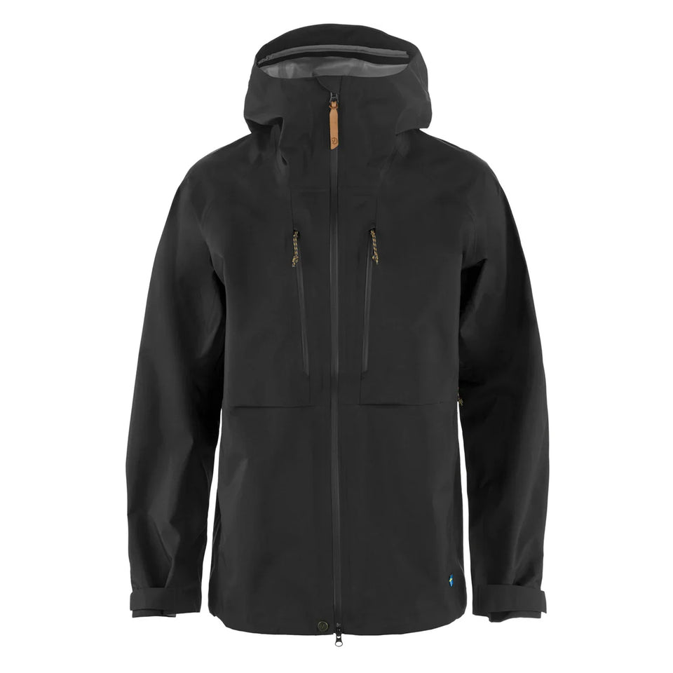The Fjällräven Keb GTX Jacket in Black is a technical trekking jacket made with GORE-TEX® and an advanced ePE-based membrane for durable waterproofing, windproofing, and breathability. The DWR finish is PFAS-free, and the jacket features a superior cut for freedom of movement and a comfortable fit. The hood provides protection without limiting vision or head movement, while spacious pockets remain accessible even when wearing a harness or backpack.