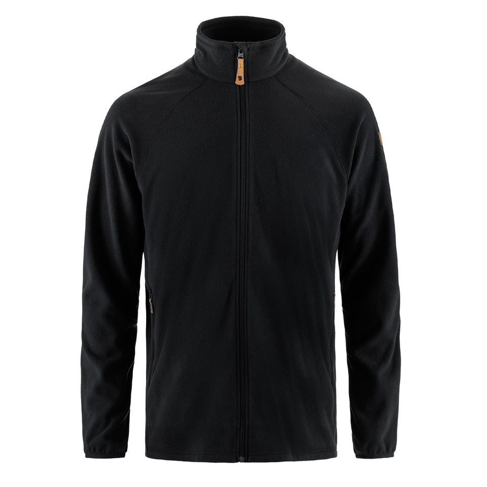Fjallraven Ovik Lite Fleece Jacket Black is a lightweight jacket in microfleece made from recycled polyester for hiking and everyday outdoor life. The Övik Lite Fleece Jacket for men is a great layering garment for the cooler months and is also perfect by itself in the springtime or on summer evenings. Timeless design with raglan sleeves and flatlock seams to reduce the risk of chafing under a backpack and give superior comfort and freedom of movement. Two zippered hand pockets, full-length front zipper and elastic binding at cuffs.