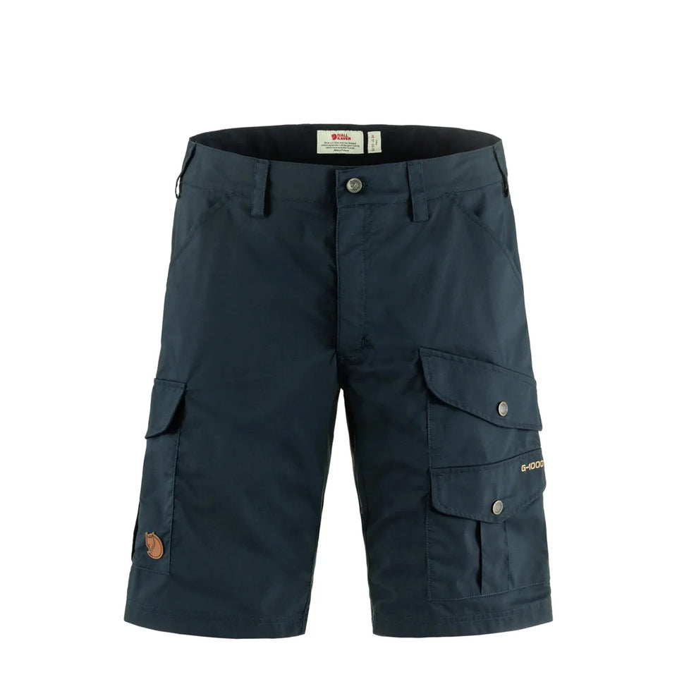 The Fjällräven Vidda Pro Lite Shorts in Dark Navy are lightweight and comfortable trekking shorts made from G-1000 Air Stretch, reinforced with double layers of fabric over the rear for added durability. These practical shorts are perfect for warm climates, featuring multiple pockets including open hand pockets, buttoned leg pockets with bellows, a multitool pocket, and an internal phone pocket. Designed with a regular fit, they provide comfort and functionality for all your outdoor adventures.