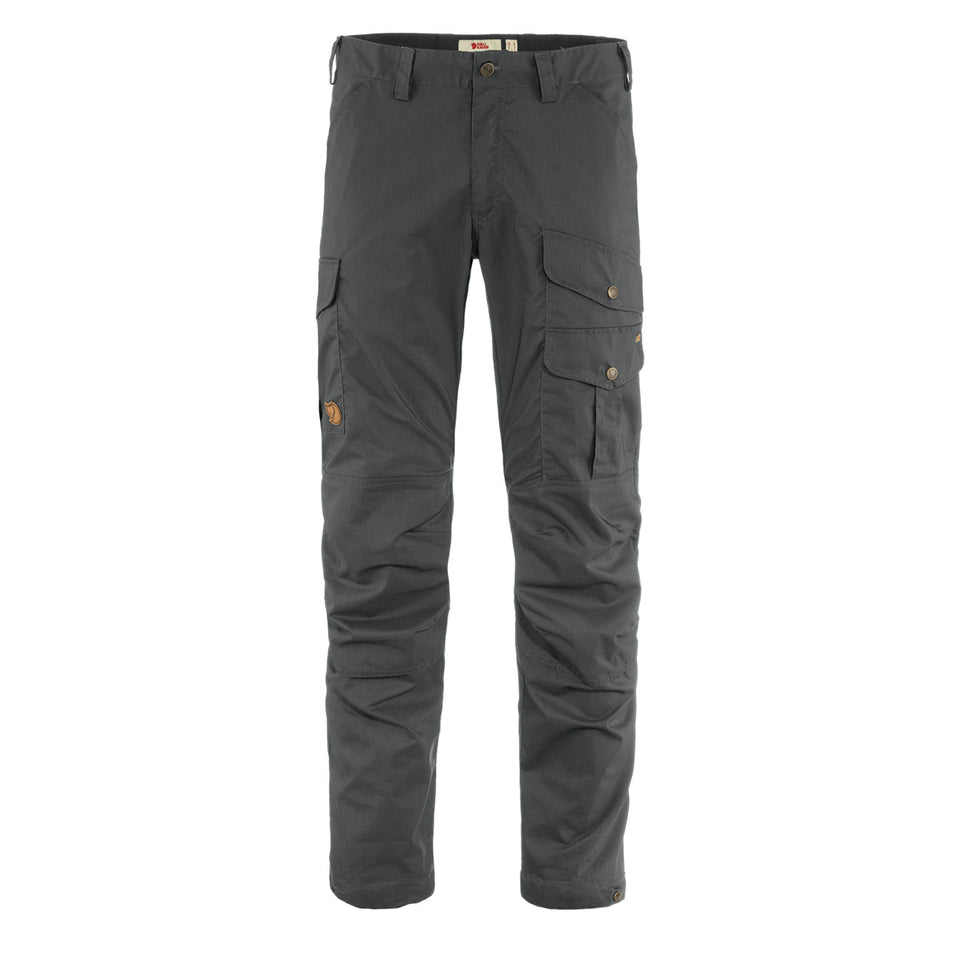 The Fjallraven Vidda Pro Lite Trousers in Dark Grey are comfortable, ventilating trekking trousers in G-1000 Air Stretch, reinforced with double layers of fabric over the rear and knees – Vidda Pro Lite Trousers M are perfect for trekking in warm climates. Regular fit, pre-shaped knees and slightly tapered legs, these trekking trousers are optimised for warm-weather conditions. Multiple pockets including open hand pockets, buttoned leg pockets with bellows, multitool pocket, and an internal phone pocket provide even more functionality along with openings for kneepads (an accessory) and adjustments at the leg endings.