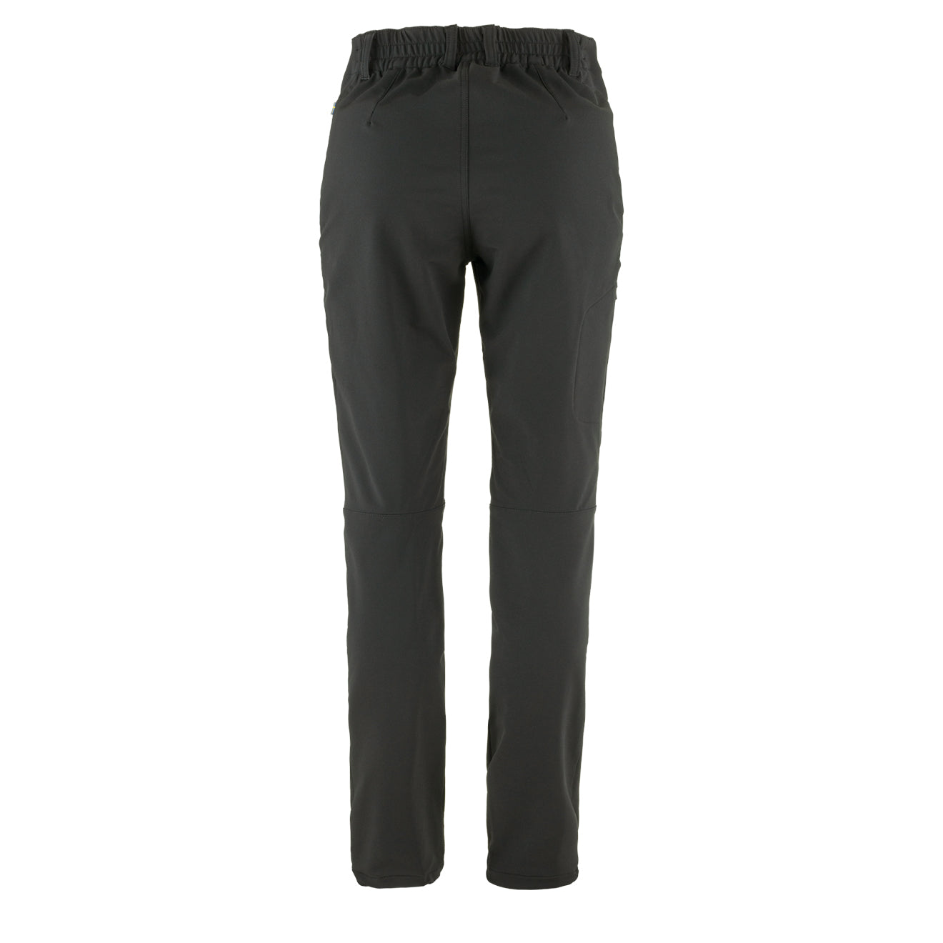 The Fjallraven Womens Abisko Stretch Trousers Reg Leg in Black are functional trousers optimised for hiking. They are perfect for treks where you need excellent freedom of movement combined with durability and protection. Well-fitting design with regular fit, slightly tapered lower legs and elastic at the sides and back of the waist. They also have a discreet zippered leg pocket for your essentials, zippered hand pockets and elastic drawcord adjustments at the leg endings.
