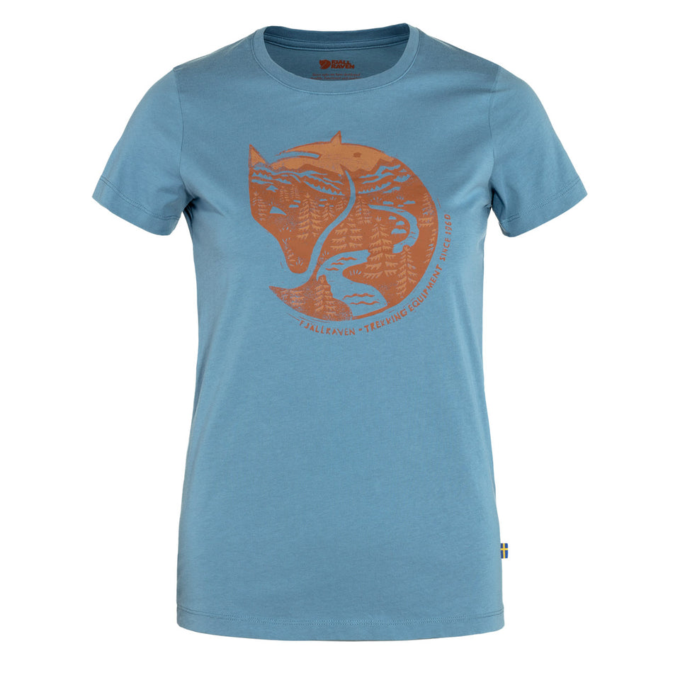 Fjällräven Womens Arctic Fox Print T-Shirt Dawn Blue / Terracotta