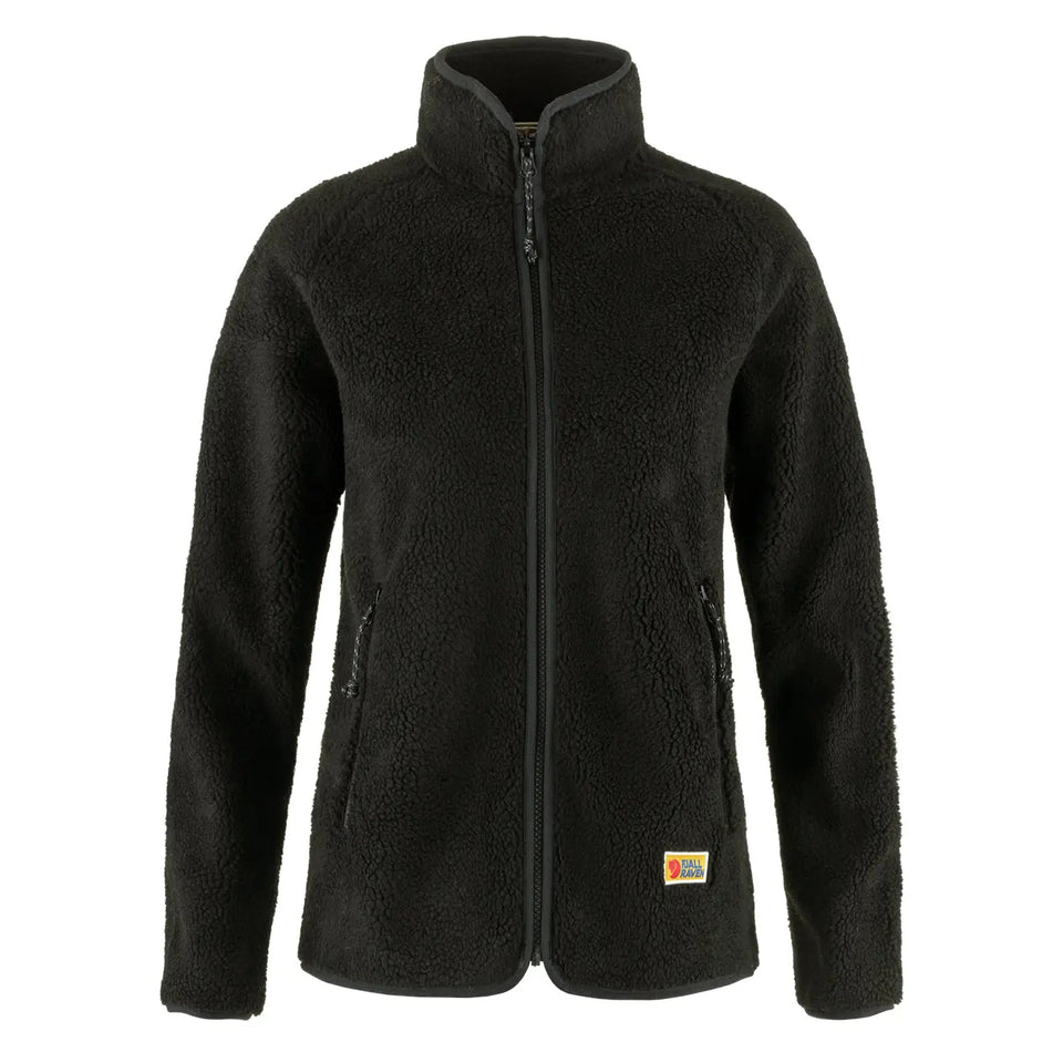 Cozy jacket crafted from recycled polyester in two-layer teddy fleece. Structured exterior and a soft jersey interior. Two zippered hand pockets to securely store necessities. Full zipper for temperature control. Great for chilly winter days and fine as a jacket in milder temps.
