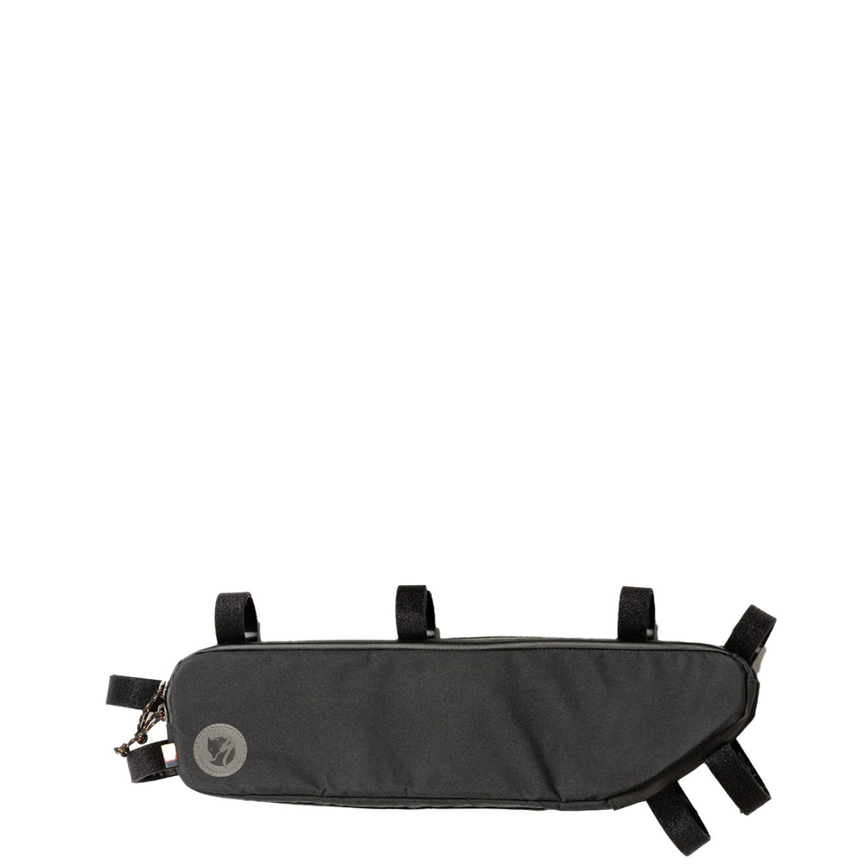 The Fjallraven x Specialized Two-way zippered frame bag with a large opening for easy access to biking essentials. It has a sturdy, reliable seven-point Velcro attachment, and the pack itself is made from durable Vinylon with a recycled nylon lining and foam-padded sides that help maintain its shape. Inside mesh pockets keep track of smaller items. Seams are not taped, but the lining is waterproof. Part of the Fjällräven/Specialized series for urban rides and bikepacking adventures.