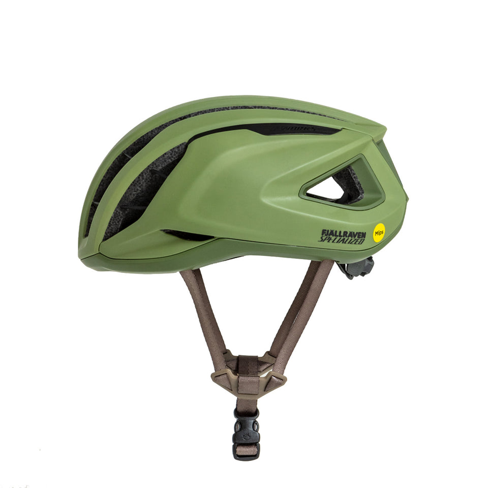 Comfortable all-around bike helmet, perfect for tough stages in hot conditions. The absence of air-blocking foam “bridges” in the center effectively creates thru-air channels, making the S/F Prevail Helmet extremely well-ventilated.. The innovative AirCage technology works as a suspension bridge and is designed to distribute localized forces throughout the helmet should an impact occur. The Occipital Base Adjustment system optimizes comfort by personalizing the fit to your head shape and the helmet angle can be adjusted if you wear glasses. An adjustable Tri-Fix web system provides added comfort and a further personalized fit, and with the ANGi-ready, ultralight Mindset fit system, you can adjust the helmet’s height as well. Ultralight and highly comfortable MIPS Node Air technology is integrated directly into the helmet padding, which has a low friction layer to dispel rotational forces. Part of the Fjällräven/Specialized series for urban rides and bikepacking adventures.