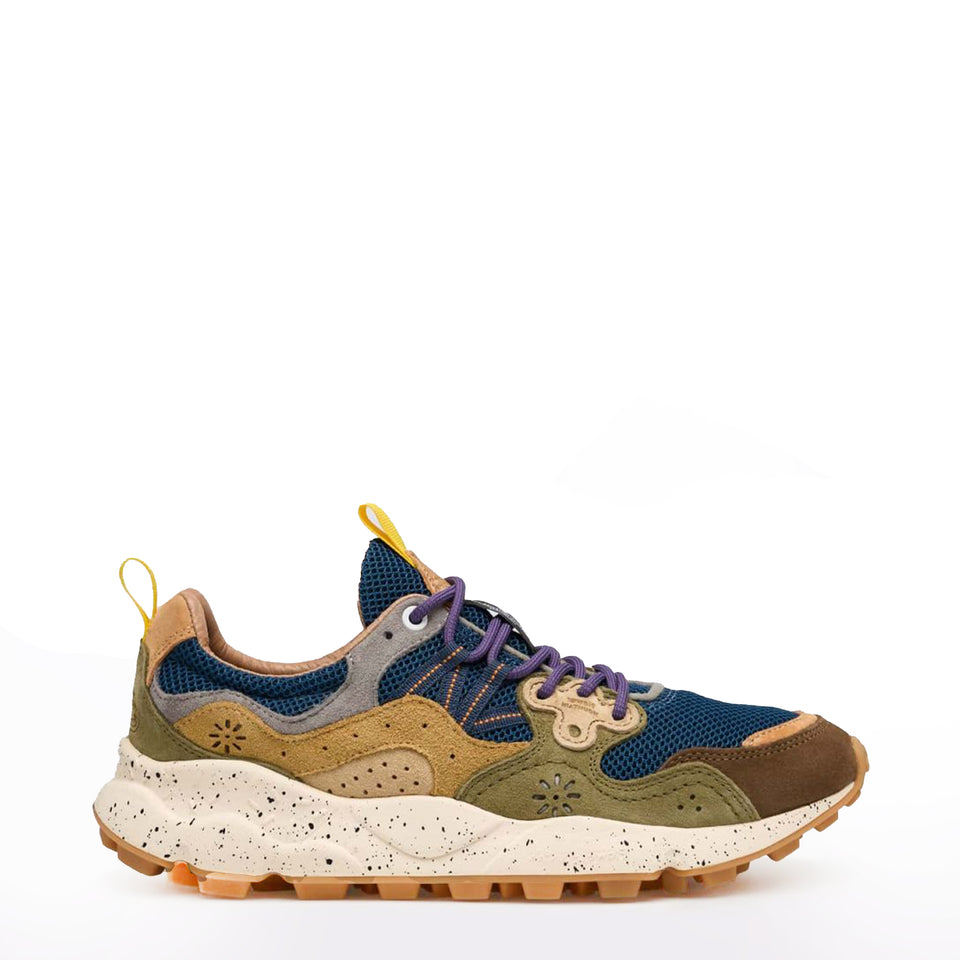 The Flower Mountain Yamano 3 Trainer in Dark Brown/Stone features a nylon upper, leather patch detail, and leather lining for a premium look. With natural cork antibacterial insoles, EVA midsole, and ultra-light rubber sole, these trainers offer comfort and durability. Trekking laces, a perforated pattern, and nylon pull tabs complete the functional, stylish design. Ideal for outdoor and everyday wear.