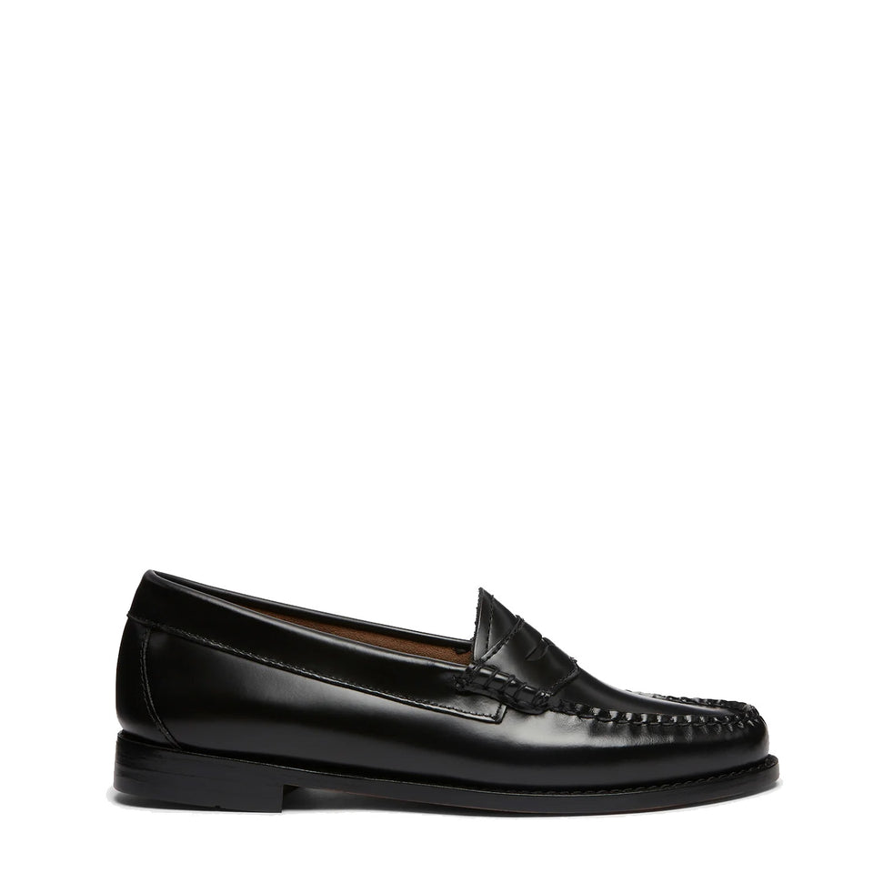 The G.H. Bass Womens Bass Weejun Penny Loafer's in Black Leather are made from soft full-grain leather. Each shoe is hand-sewn and features a durable, waxy thread. They have an ergonomic internal cushioned footbed and are embossed with a gold-tone in sock branding.