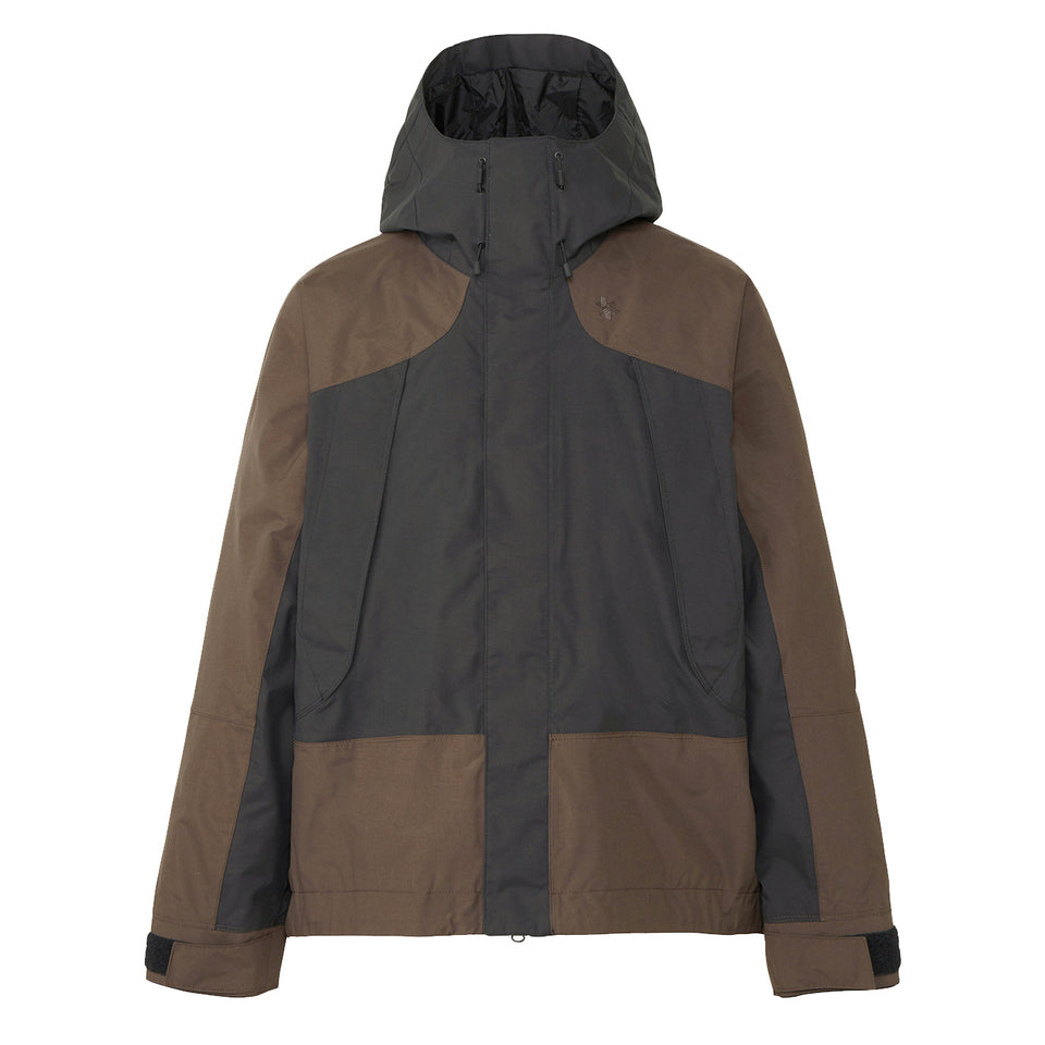 Goldwin Pertex Unlimited 2L Jacket in Jet Brown / Black. A jacket with cotton-like texture and stitching design that enables you to enjoy outdoor styles as an extension of everyday fashion. Made of water-resistant 2-layer fabric, Partex Unlimited, that is also windproof and moisture-permeable.