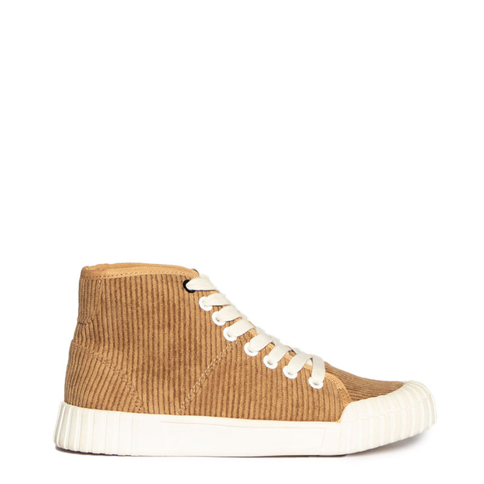 The Rhubarb Hi is a Good News classic. Nice and simple, this hi-top is made with corduroy. Pair with a dress or a lovely pair of trousers for an effortless look!