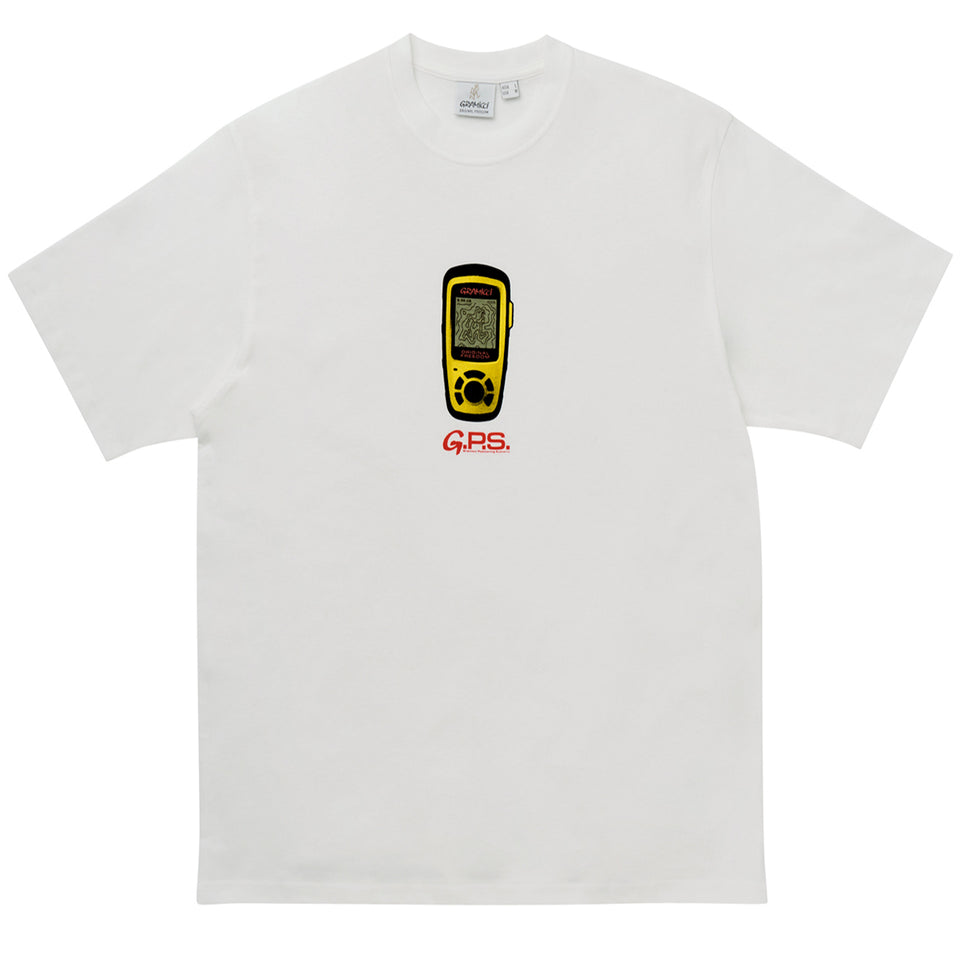 The Gramicci GPS Tee in White is a comfortable cotton t-shirt with a playful graphic of a classic yellow-and-black GPS device on the front. Crafted from mid-weight dry-touch jersey, it offers a soft feel and relaxed fit. Perfect for everyday wear, this tee adds a touch of retro charm while keeping you comfortable and stylish.