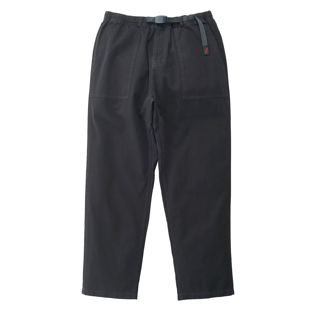 The Gramicci Loose Tapered Ridge Pants in Black are tough, comfortable pants built for outdoor adventures. Made from durable cotton twill, they have a roomy waist and tapered legs for a relaxed fit. Large front pockets and the classic Gramicci gusset crotch give plenty of freedom to move, making them perfect for hiking, climbing, or just exploring the outdoors.