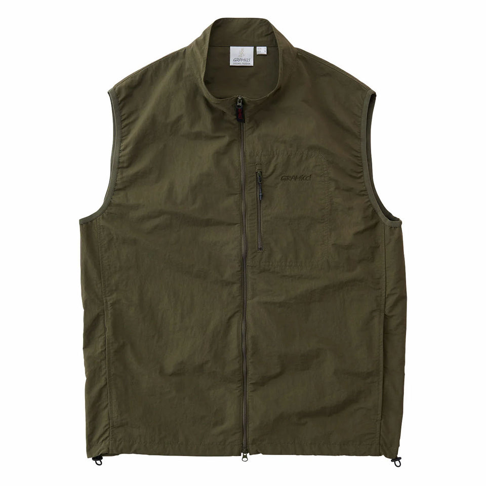 The Gramicci Nylon Vest in Deep Olive is a lightweight utility vest crafted from recycled nylon, making it an eco-friendly choice. This unique fabric, woven from fabric offcuts, is both water-repellent and quick-drying, making it perfect for riverside adventures—whether you’re casting a line or paddling a canoe. With ample pocket space, including zip pockets to keep your valuables safe and secure, this vest combines functionality with style.