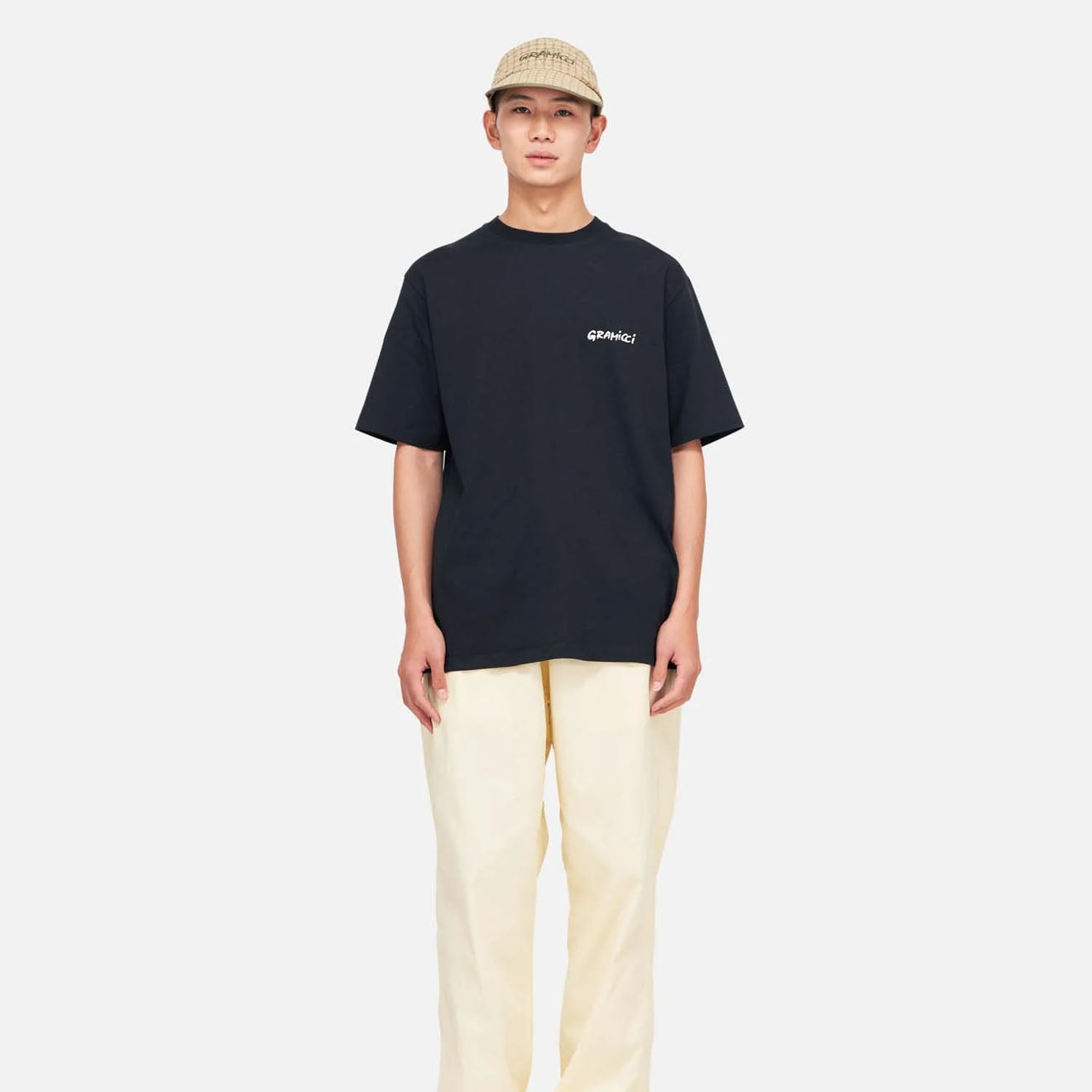The Gramicci Snail Tee in Vintage Black is made from mid-weight jersey cotton, making it the ideal year-round essential. This versatile tee pairs effortlessly with shorts on a warm summer day or fits comfortably under layers during the winter months. Plus, the stylish graphic adds a touch of flair to your look. A must-have for any wardrobe!