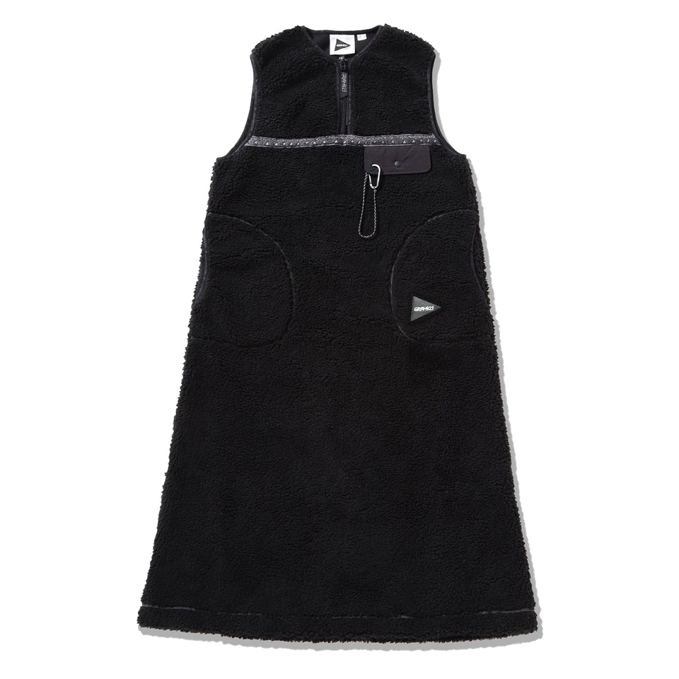 The Gramicci x And Wander JQ Tape Fleece Dress in Black is a standout piece from the collaboration with Japan’s and wander. Crafted from thick sherpa fleece and lined with nylon knit, it provides exceptional warmth and comfort. This innovative design reimagines cold-weather gear, blending the cozy feel of a fleece jacket with a stylish, outdoor-inspired dress silhouette.