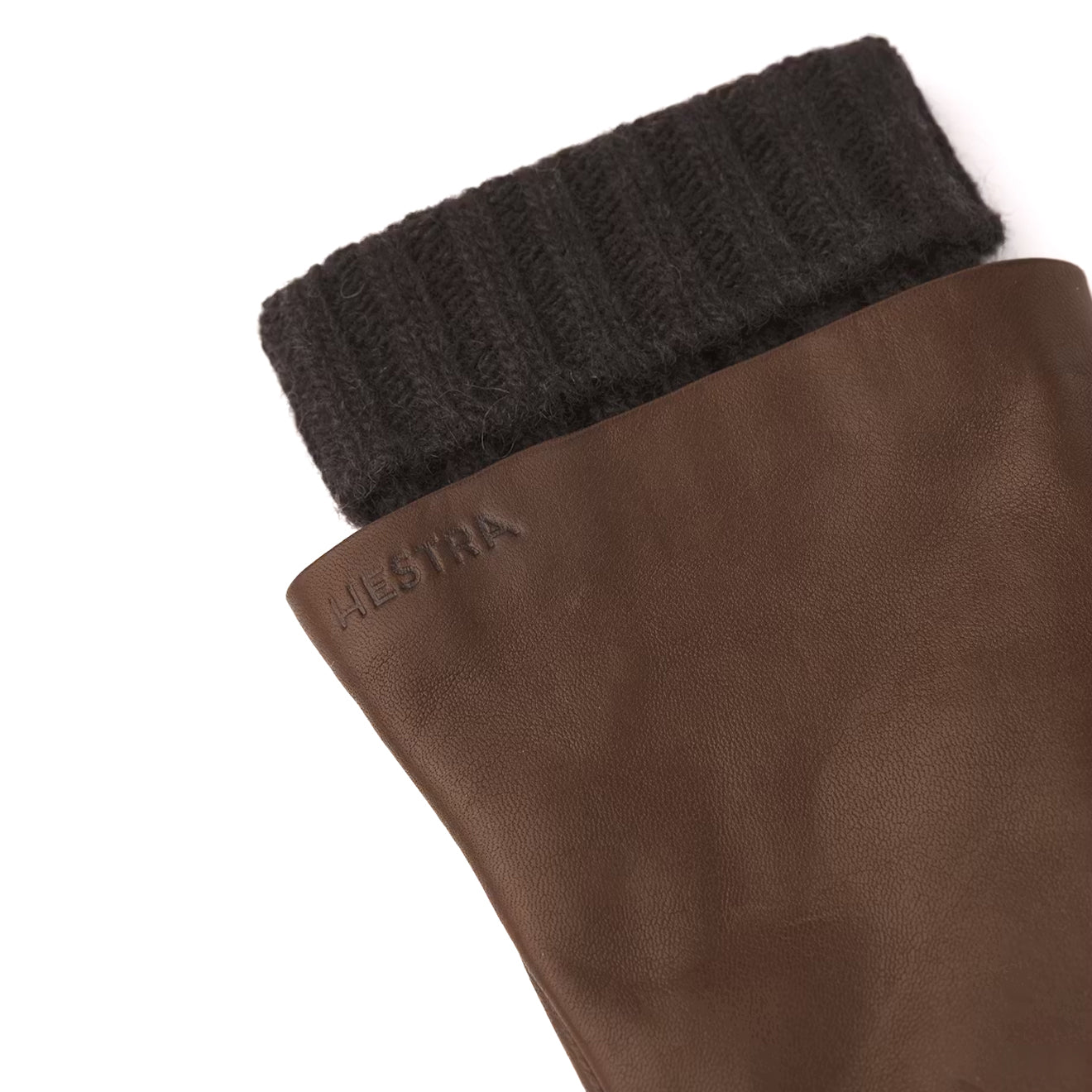 The Hestra Womens Megan Gloves in Chestnut combine classic style with practical warmth. Crafted from Italian lamb nappa leather, these gloves have a soft knitted wool lining and a ribbed cuff for comfort and fit. Half piqué seams add subtle detailing, and the close-fitting design ensures a sleek silhouette. These gloves are perfect for everyday wear or dressing up on colder days.