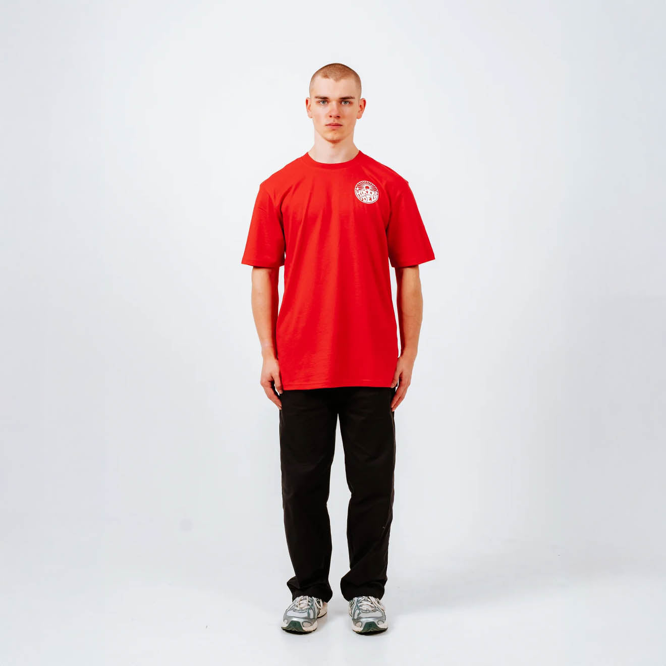 The Hikerdelic Core Logo T-Shirt in Red features the logo that launched the brand. Made from 100% cotton, this regular-fitting t-shirt is printed locally in Manchester for a clean, high-quality finish.