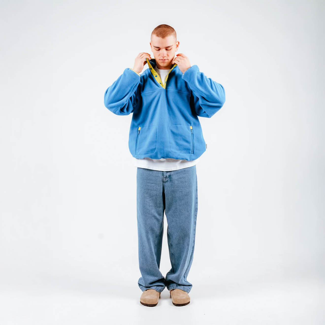 The Hikerdelic Drifter Fleece in Blue/Lime blends retro outdoor styling with everyday comfort. Made from soft, lightweight fleece, it offers warmth without weight and is designed with a slightly boxy fit for relaxed movement.